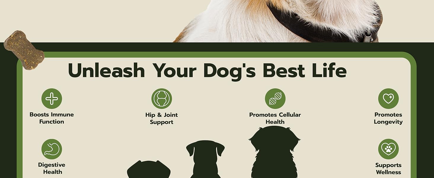 العافية التي يستحقونها: مضغ الكلاب الغني بمضادات الأكسدة يجعل الدعم اليومي للمناعة والأمعاء والمفاصل سهلًا ولذيذًا. لقد تم تصميمها للكلاب من جميع الأعمار والسلالات لتبقى قوية ونشطة ومليئة بالحياة. يمكنك استخدامها كهدية لجوارب الكلاب أو هدايا عيد الميلاد للكلاب أيضًا!