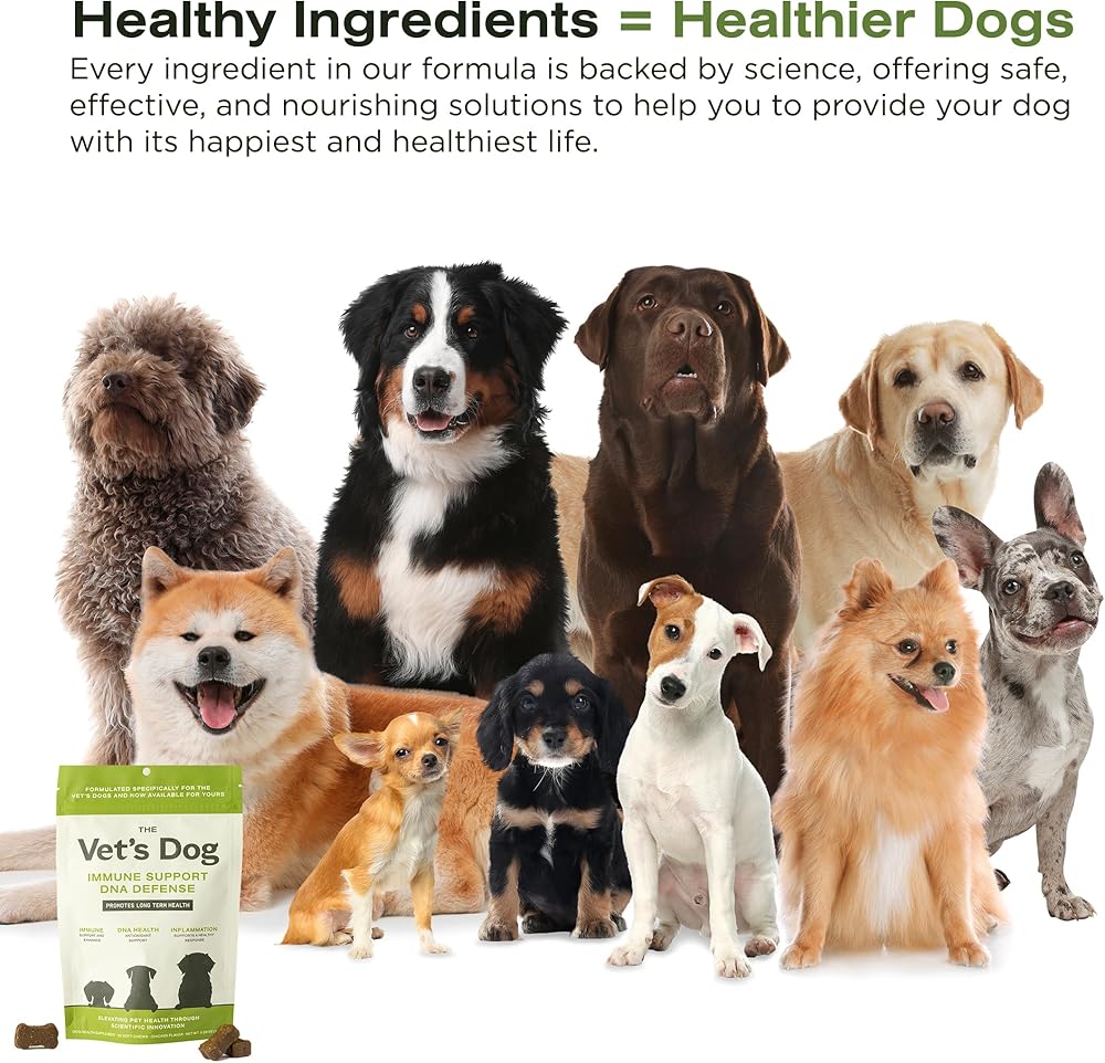 تم تركيبه بالحب: ابتكره الجراح البيطري المعتمد من مجلس الإدارة الدكتور هنري بيانوتشي، تجمع هذه المضغ بين عقود من الخبرة السريرية والحب العميق للكلاب. العلم الحقيقي. نتائج حقيقية. رعاية حقيقية في كل مضغة - لأن The Vet's Dog تم تصميمه لمساعدة صديقك المفضل على أن يعيش حياته الأكثر سعادة وصحة لسنوات قادمة.