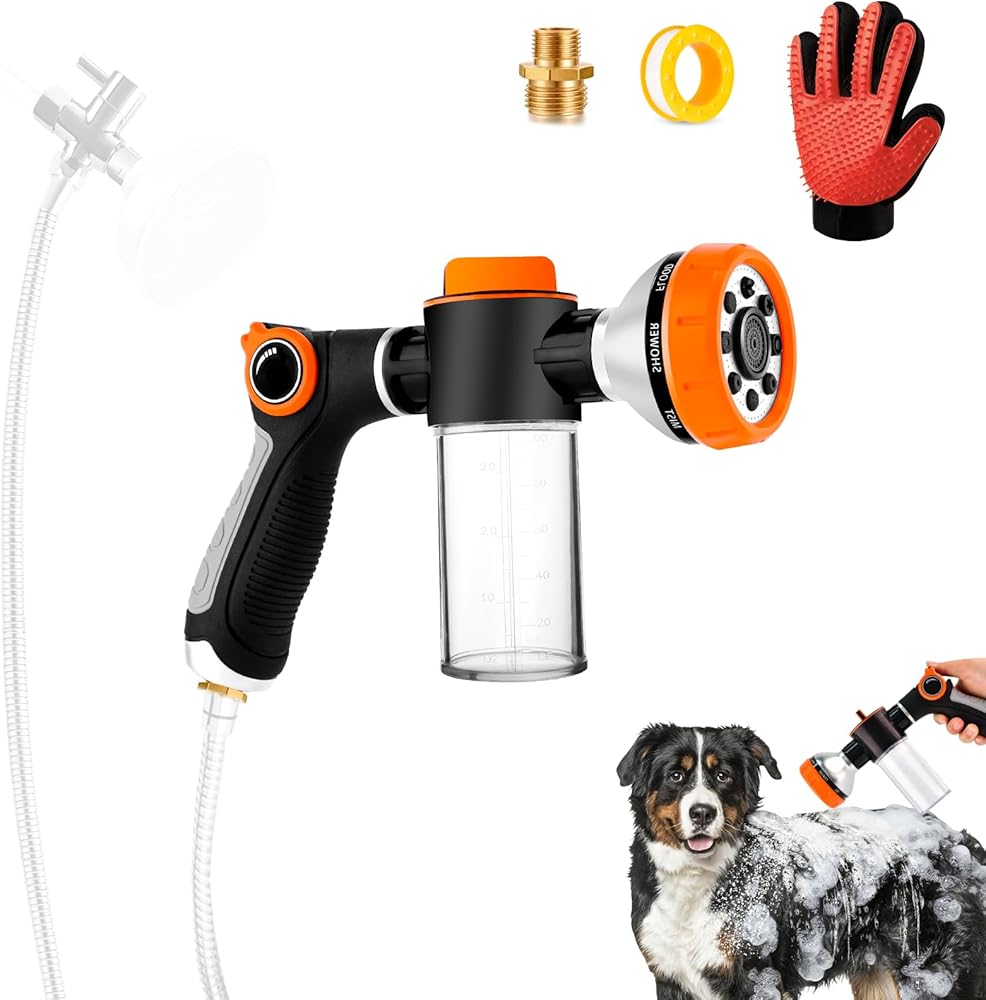 • ملحق خرطوم غسيل الكلاب 3 في 1: ملحق خرطوم غسيل الكلاب الرائع الخاص بنا هو الحل الأمثل لجرو نظيف. استخدمه في الداخل في حوض الاستحمام أو الدش لغسل خالٍ من الفوضى، أو خذه في الخارج لشطف سريع وسهل في الفناء الخلفي. على محمل الجد، إنه متعدد الاستخدامات! لا مزيد من القلق بشأن الطقس - سواء كان يومًا شتويًا باردًا أو ظهيرة صيفية حارة، فأنت دائمًا جاهز لعملية تنظيف بسيطة وخالية من التوتر، قل وداعًا للصراع والفوضى.