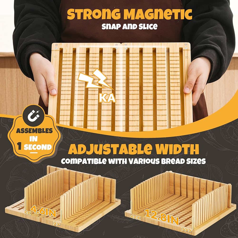 【Two-in-One Expandable Design】 Features an innovative magnetic joint system — use a single half for smaller loaves, bagels, or sandwich bread, or combine both sides to expand up to 12.8 inches wide for large sourdough boules and artisan loaves. Perfect for home bakers and professional bakeries alike