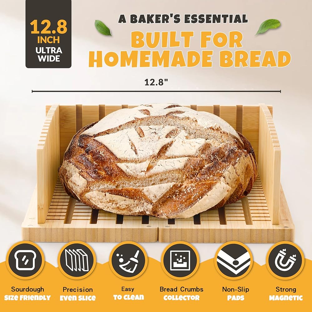 Meet the 12.8" Extra-Wide Professional Bread Slicer, the upgraded solution for perfect sourdough and artisan bread slicing.