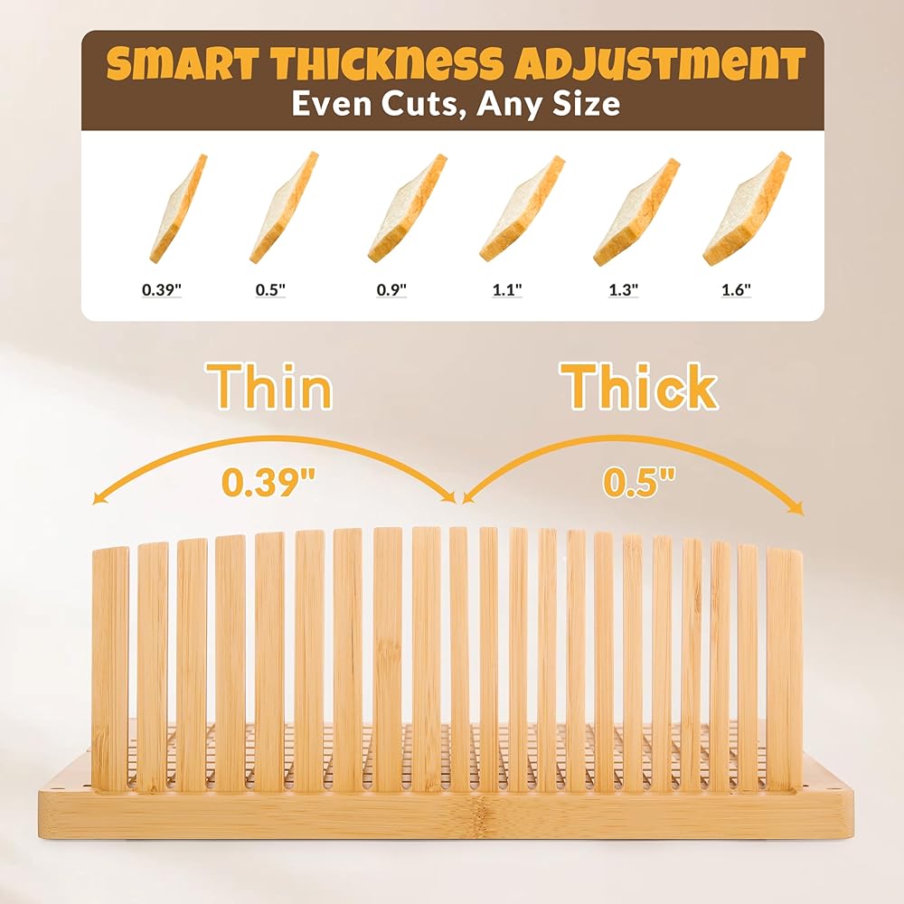 【Precision Slicing Starts with the Right Adjustment】 To achieve perfect slices, set the slicer width just slightly narrower than your knife, allowing the blade to move cleanly through the bread for smooth, consistent results