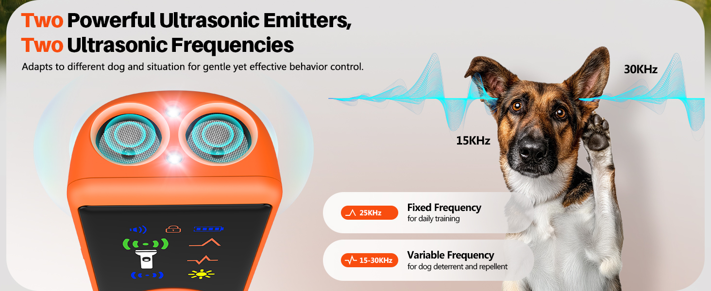 • ♥ تقنية الموجات فوق الصوتية ذات الباعث المزدوج ♥: مصمم خصيصًا للكلاب ذات الأمزجة والسلوكيات المختلفة، يتميز جهاز تدريب الكلاب بالموجات فوق الصوتية هذا بوضعين للتردد - الوضع الثابت 25 كيلو هرتز للتصحيح المتسق ووضع التردد المتغير 15 كيلو هرتز - 30 كيلو هرتز للتدريب الشخصي. يوفر تصميم الباعث المزدوج نطاقًا أوسع للموجات فوق الصوتية يصل إلى 16.4 قدمًا - 35 قدمًا، مما يجعل مبيد الكلاب بالموجات فوق الصوتية مثاليًا للاستخدام الداخلي والخارجي.