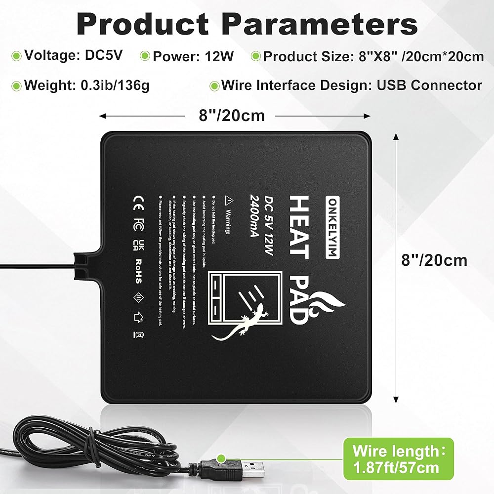 [تصميم أمان فائق مع مصدر طاقة USB منخفض الجهد]: تستخدم وسادة الحرارة الزواحف ONKELYIM واجهة USB ومصدر طاقة منخفض الجهد DC5V، فهي تزيل تمامًا خطر ارتفاع درجة الحرارة. حتى أثناء التشغيل لفترة طويلة، فإنه يحافظ على ارتفاع ثابت في درجة الحرارة، مما يوفر بيئة آمنة ودافئة لخاتمك راحة البال أثناء الاستخدام. (ملاحظة: لا ينبغي وضع الزواحف مباشرة على منصات التدفئة)