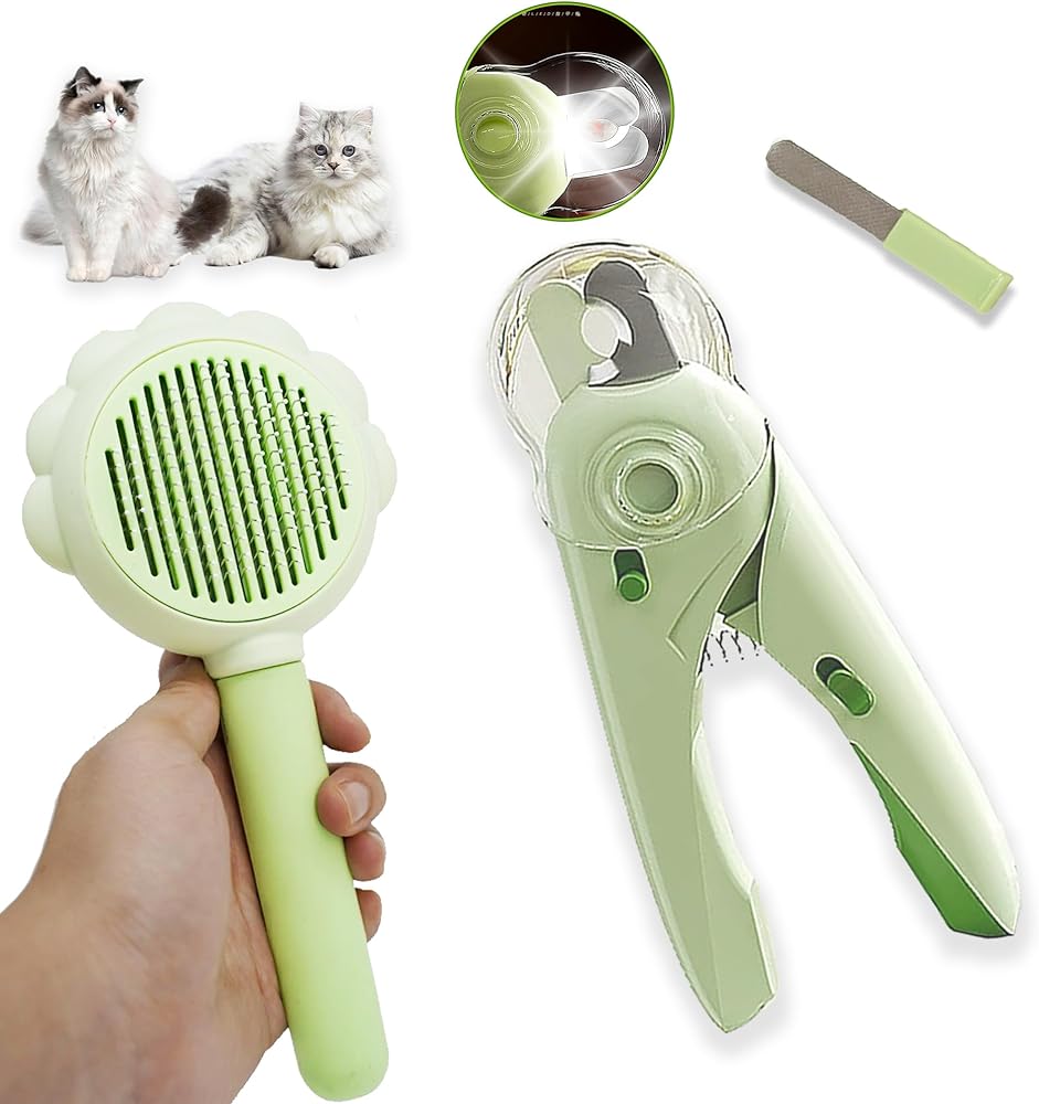PROFESSIONAL CAT GROOMING KIT: Includes a cat nail clipper, brush, and comb to meet most daily grooming needs. Perfect for keeping your furry friend's coat shiny and healthy while making nail trims stress-free. A must-have set for pet lovers and an ideal gift for your cat!