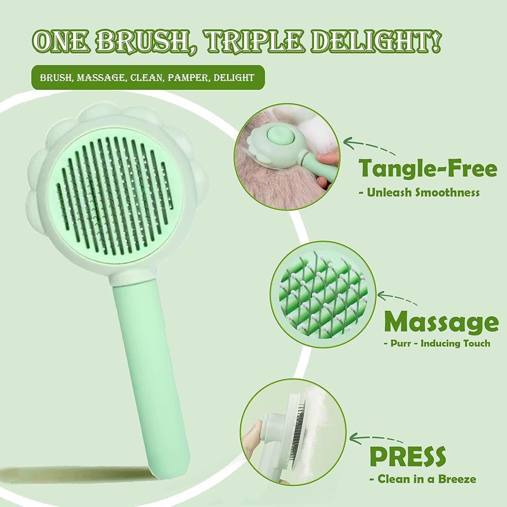 TRIPLE-ACTION CAT BRUSH: Grooming, massaging, and shining. 144 springy, skin-safe needles- Detangles fur, massages skin, and boosts blood flow for a glossy coat. One-Click Self-Cleaning – Effortlessly removes trapped hair with a simple push – no tugging or mess!