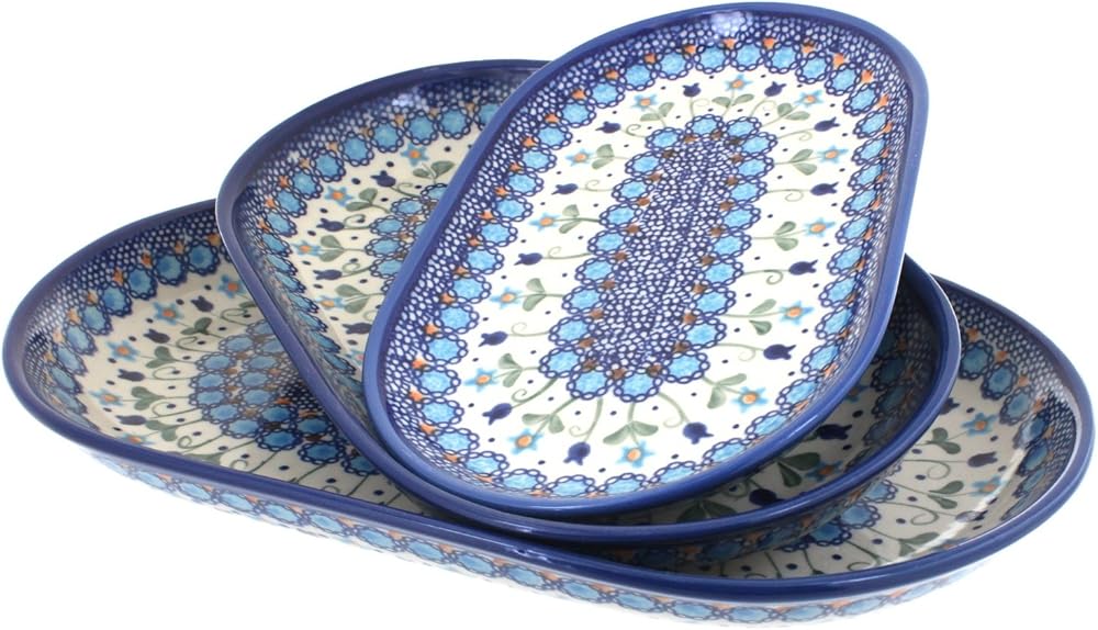 طقم تقديم بيضاوي مكون من 3 قطع، بما في ذلك صغير - 9 بوصة × 5.75 بوصة، متوسط - 10.75 بوصة × 6.75 بوصة، كبير - 12.75 بوصة × 8 بوصة
