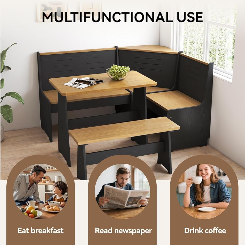 (الخشب الأبيض) تصميم ذكي: شكل حرف L قابل للتحويل يسار/يمين يناسب أي زاوية. مثالية للمطابخ الصغيرة أو الشقق أو زوايا تناول الطعام. يوفر مساحة 30% مقارنة بالمجموعات التقليدية.