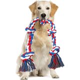 【حبل عالي التحمل】 متعدد الألوان مع 5 عقد، وطول 91.44 سم، ووزن 1.59 كجم، مخصص للكلاب الكبيرة والمتوسطة، وعقد حبل المضغ للكلاب تجعل من السهل العض والمضغ، حتى إذا كان كلبك يمضغ بقوة، فإن حبل الكلب قوي بما فيه الكفاية.
