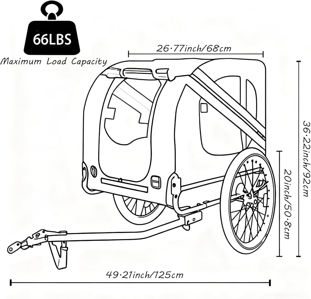 • Easy In, Easy Out:Designed To Hold One Pet Up To 66 Lb,Easy-To-Clean And Waterproof Oxford Cloth,The Wheeled Dog House Offers A Roomy Interior;Mesh Windows With Roll-Up Rain/Sun-Proof Curtains Keep Your Pet Stays Cozy With Plenty Of Fresh Air And A Great View.This Trailer Gives Your Four-Legged Friend A Front-Row Seat To All Your Adventures.