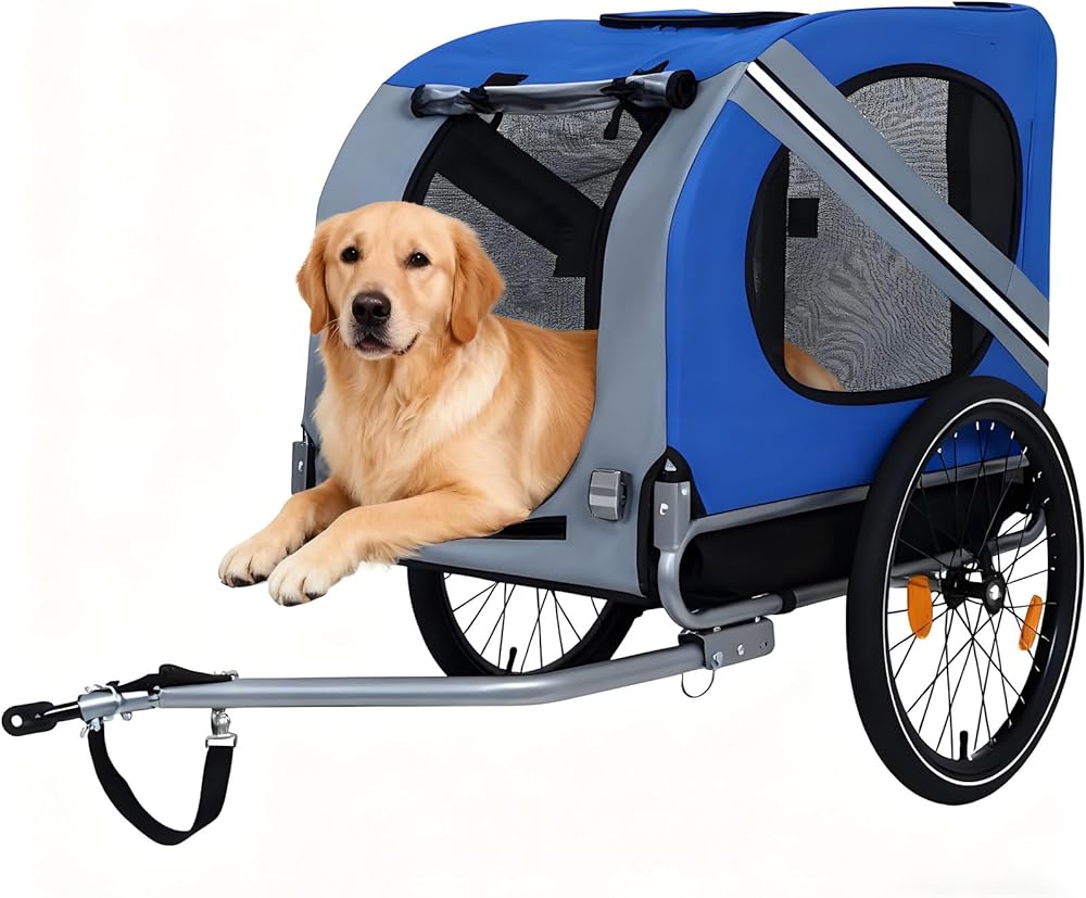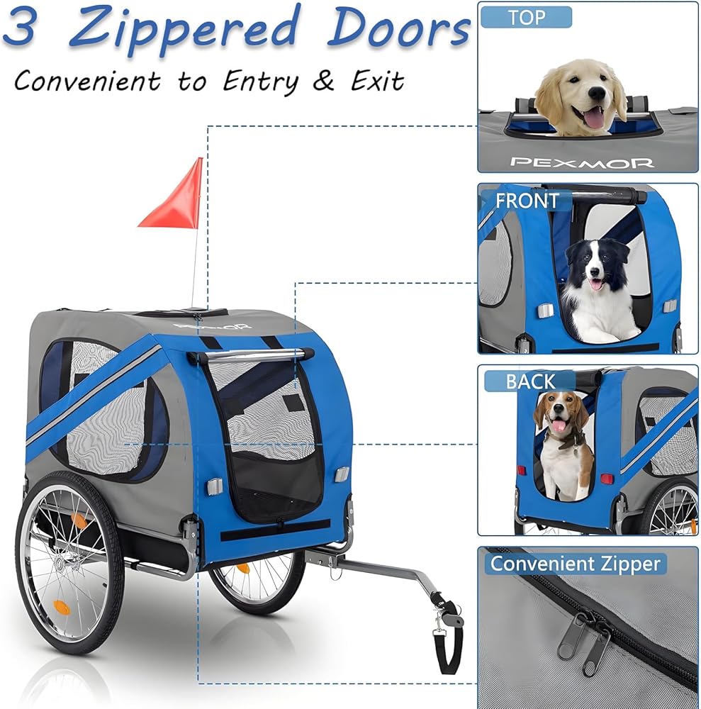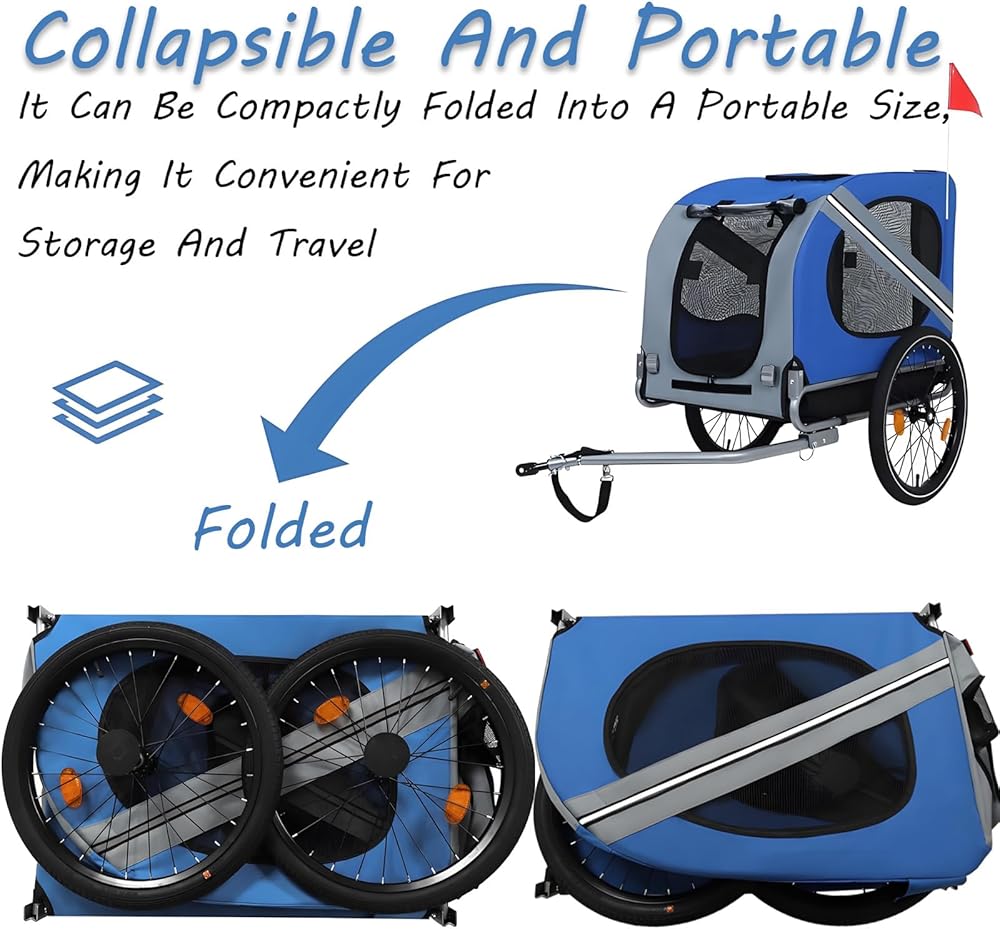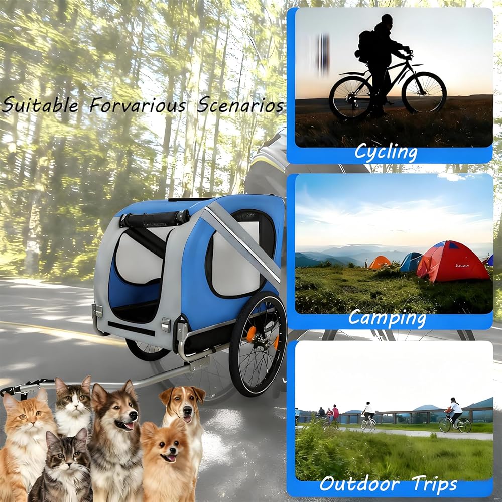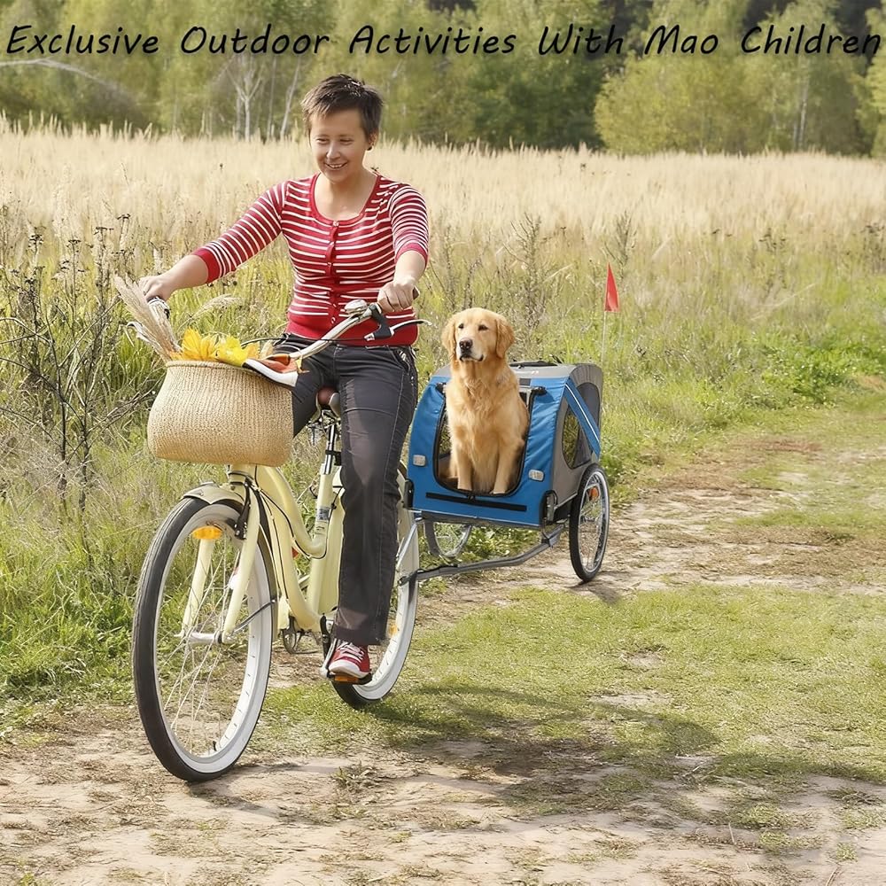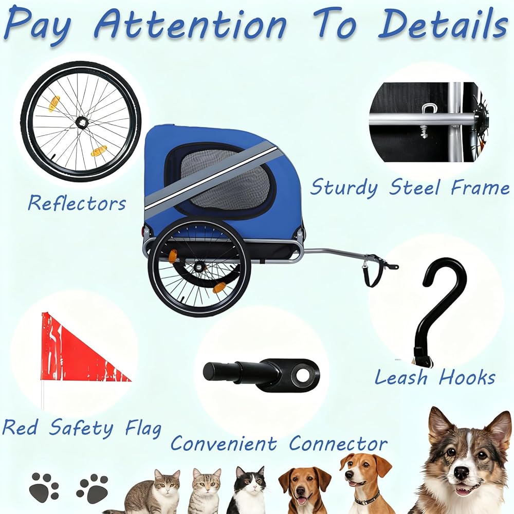 • Safety First:The Pet Trailer Is A Safe,Comfortable Way To Bring Your Furry Companion Along For The Ride.The Safety Belt Inside The Dog Trailer Securely Fastens Your Pet To Prevent Them From Jumping Out.A Safety Flag And Crash Guard Ensure A Safe Ride,While Reflective Strips On Both Sides Enhance Visibility In Low-Light Conditions.