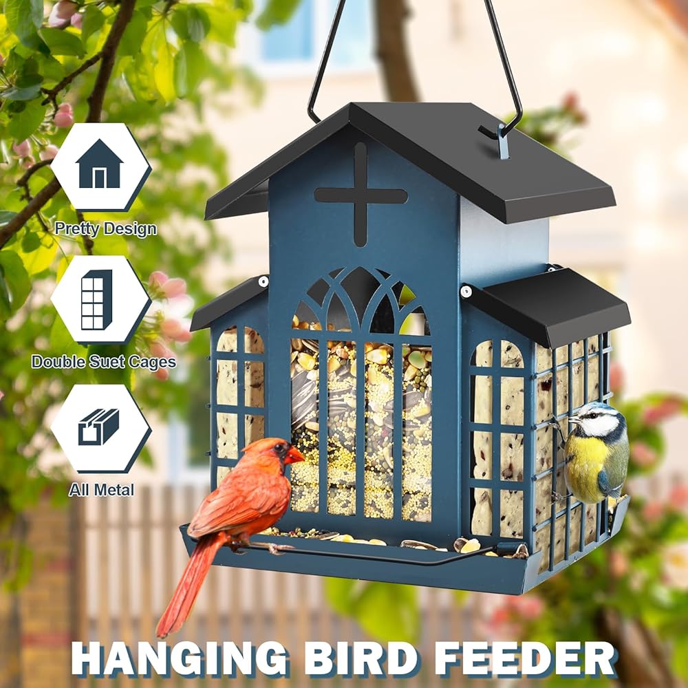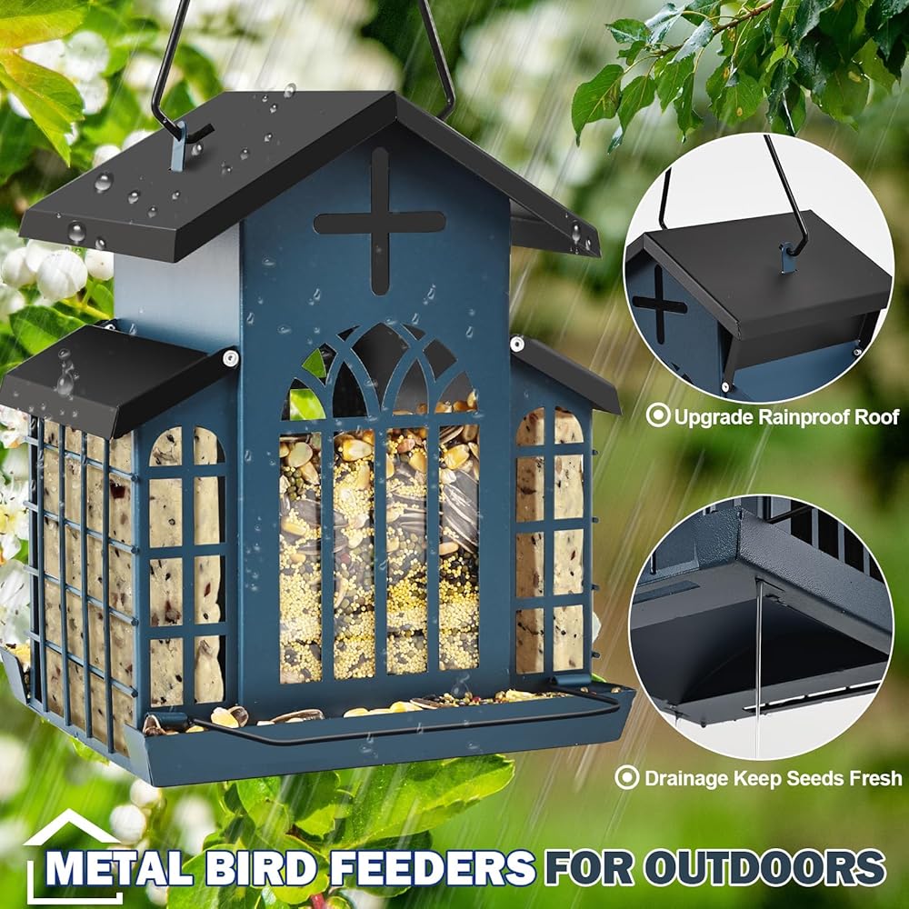 【وحدة تغذية الطيور البرية كبيرة السعة】بسعة 5 رطل، تعتبر وحدة تغذية الطيور الكبيرة هذه مساعدة رائعة لمحبي الطيور. من بين مغذيات الطيور الخارجية، فإن بنيتها المعدنية وتصميمها الداخلي الفسيح ملفت للنظر. تسمح المساحة المخططة جيدًا بتخزين المزيد من بذور الطيور. سواء كنت تهدف إلى جذب العصافير أو الكاردينال أو الطيور البرية الأخرى، فإن وحدة تغذية الطيور المعدنية المعلقة هذه للعصافير والكاردينال تلبي احتياجاتك. إنه الخيار الأفضل لأولئك الذين يبحثون عن وحدة تغذية طيور معدنية كبيرة الحجم يمكن الاعتماد عليها للاستخدام في الهواء الطلق.
