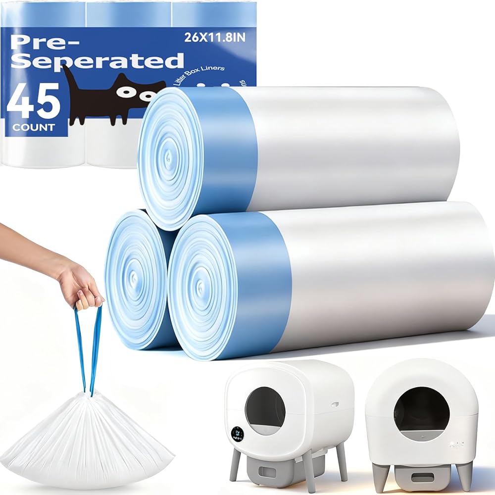 سعة كبيرة جدًا: قياس واسع 26 بوصة × 11.8 بوصة (متوافق مع معظم صناديق الفضلات، نصائح - قم بقياس صندوق الفضلات الخاص بك أولاً قبل الشراء للتأكد من أنه مطابق تمامًا)، هذه البطانات تحمل ما يصل إلى 10-12 جالونًا - مساحة كبيرة حتى للكثير من فضلات القطط.