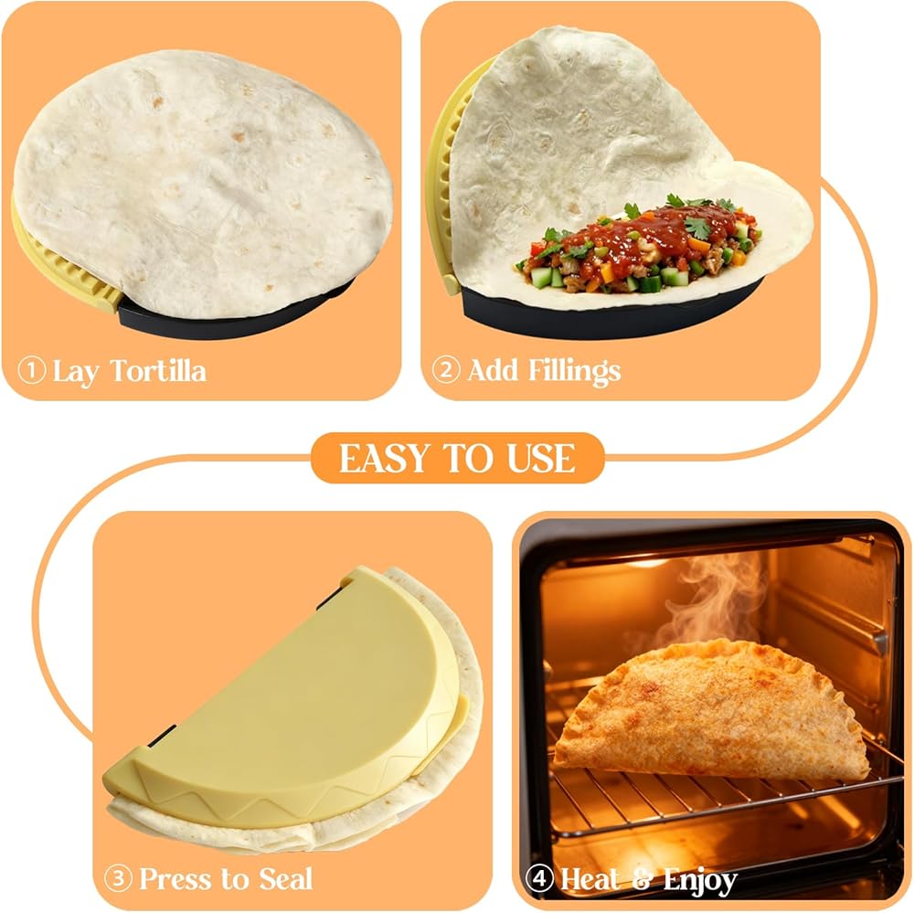 【ختم مانع للتسرب لوجبات خالية من الفوضى】 تضمن حافة مانع تسرب التورتيلا المدمجة إغلاقًا محكمًا وآمنًا لجميع اللفائف والفطائر. تعمل تقنية الختم هذه على قفل المكونات بشكل فعال، مما يمنع الحشو من الانسكاب من البوريتو والإمبانادا. احصل على نتائج مثالية بجودة المطاعم مع كل استخدام.