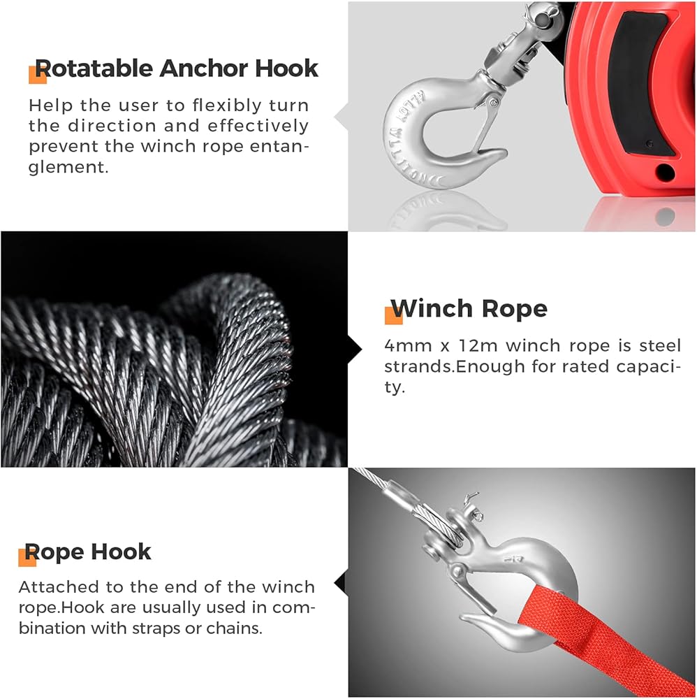 ✔【مكونات رافعة المثقاب】سلك مجدول من الستيل بطول 40 قدم | مقبض قابض لقطار التروس ذاتي القفل | سلك عادل مرن | عمود مفك 5/16 انش | خطاف مرساة وخطاف حبل