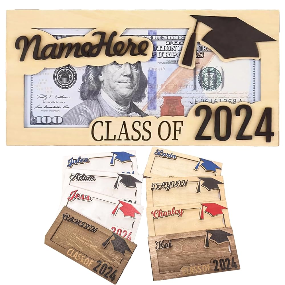 👍『Personalized Graduation Elegance』Celebrate the Class of 2024 with our Custom Wooden Money Holder. Personalized with their name and graduation year, it's a stylish keepsake and secure gift repository. 👍『Tailored Senior Tribute』Honor the Class of 2024 with our Engraved Senior Money Gift. This wooden box is a symbol of dedication, personalized with an engraving capturing their journey. 👍『Class of 2024 Celebration』Elevate their graduation with our Personalized Money Holder. Crafted from durable wood, it offers a stylish way to present gifts to the graduating class.