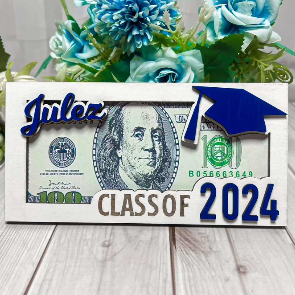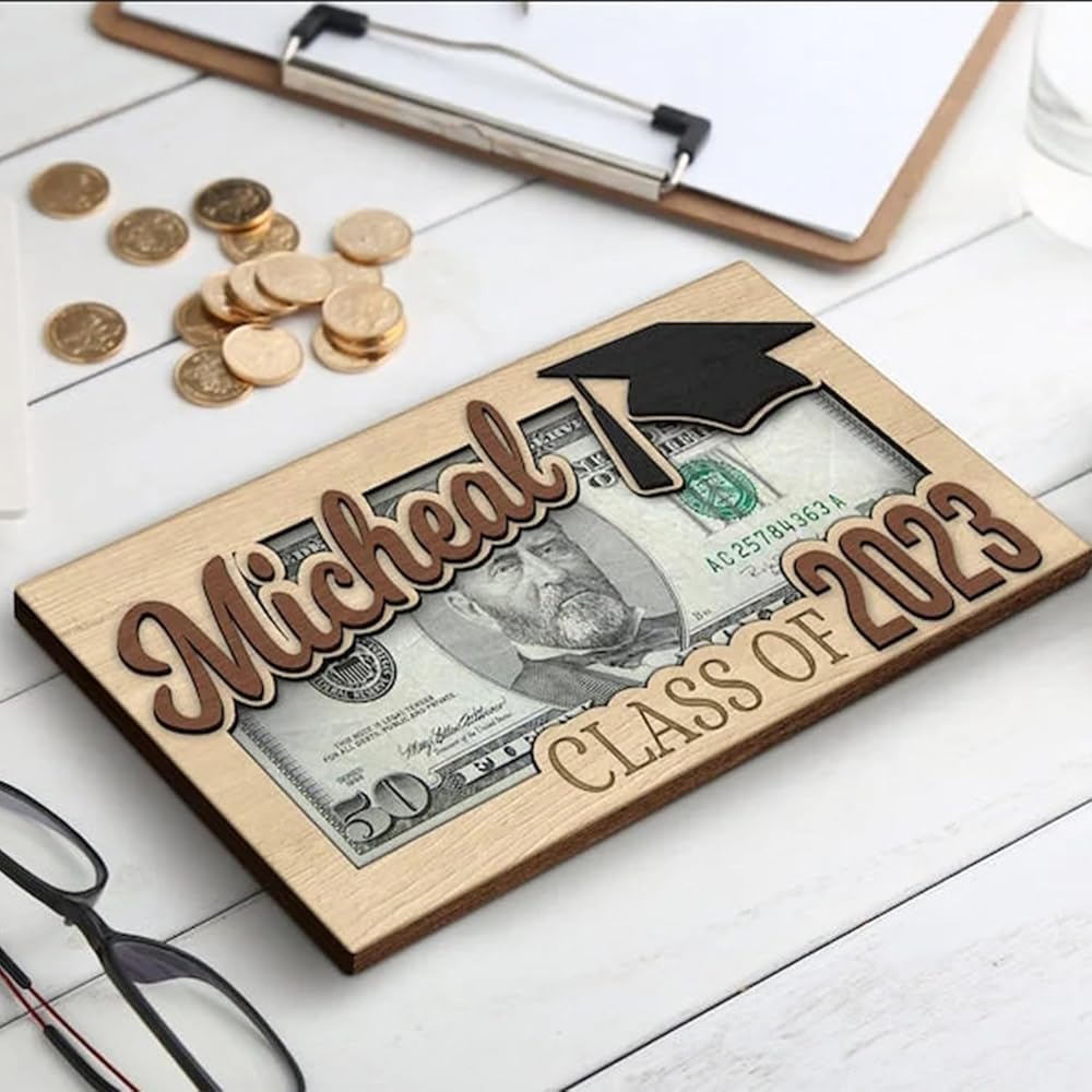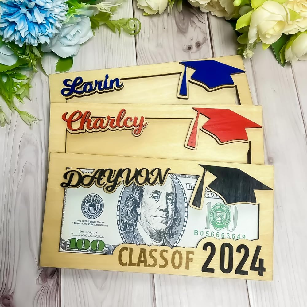 👍『Class of 2024 Celebration』Elevate their graduation with our Personalized Money Holder. Crafted from durable wood, it offers a stylish way to present gifts to the graduating class.