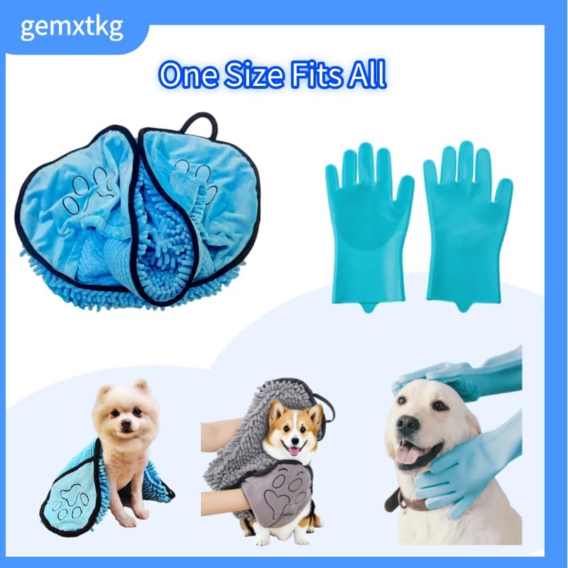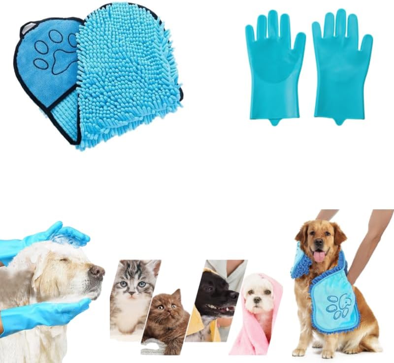 • COMPLETE SET: Includes silicone brush gloves for gentle scrubbing, quick-dry absorbent towel, and grooming accessories for thorough pet bathing