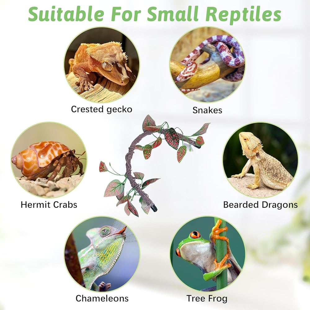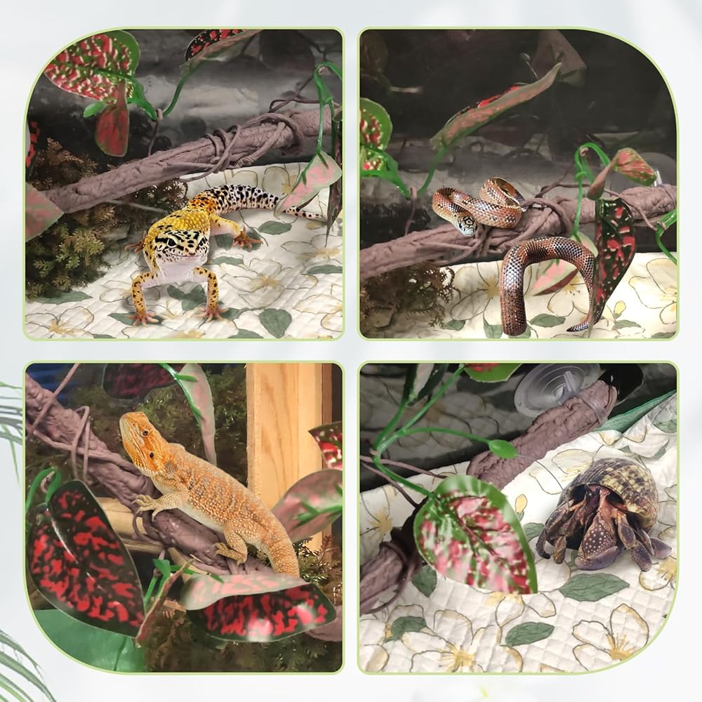 نباتات الزواحف الواقعية: يتميز السطح بملمس فرع التسلق للزواحف، مما يجعل حيواناتك الأليفة تشعر وكأنها في الطبيعة، مما يسمح لها بالتسلق أو الاختباء بحرية من أجل متعة لا نهاية لها. يمكن تعديل الأوراق المزيفة النابضة بالحياة بسهولة في أي وضع، مما يخلق موطنًا طبيعيًا وقابل للتخصيص للبرمائيات الخاصة بك