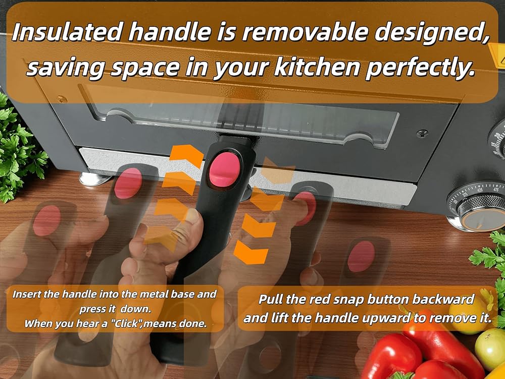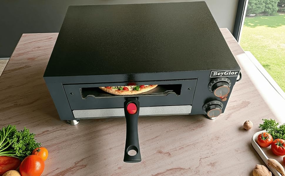 • مظهر رائع ودرجة حرارة ووقت مخصصين: تعمل المقابض المعدنية الفاخرة على تعزيز ملمس الفرن الكهربائي. نطاق درجة الحرارة القابل للتعديل هو 0 ~ 625 درجة فهرنهايت، ويعمل مؤقت سطح طاولة فرن البيتزا كمنبه عند انتهاء الوقت المحدد.