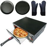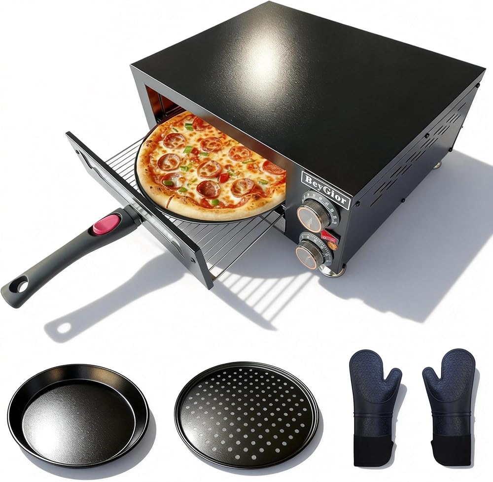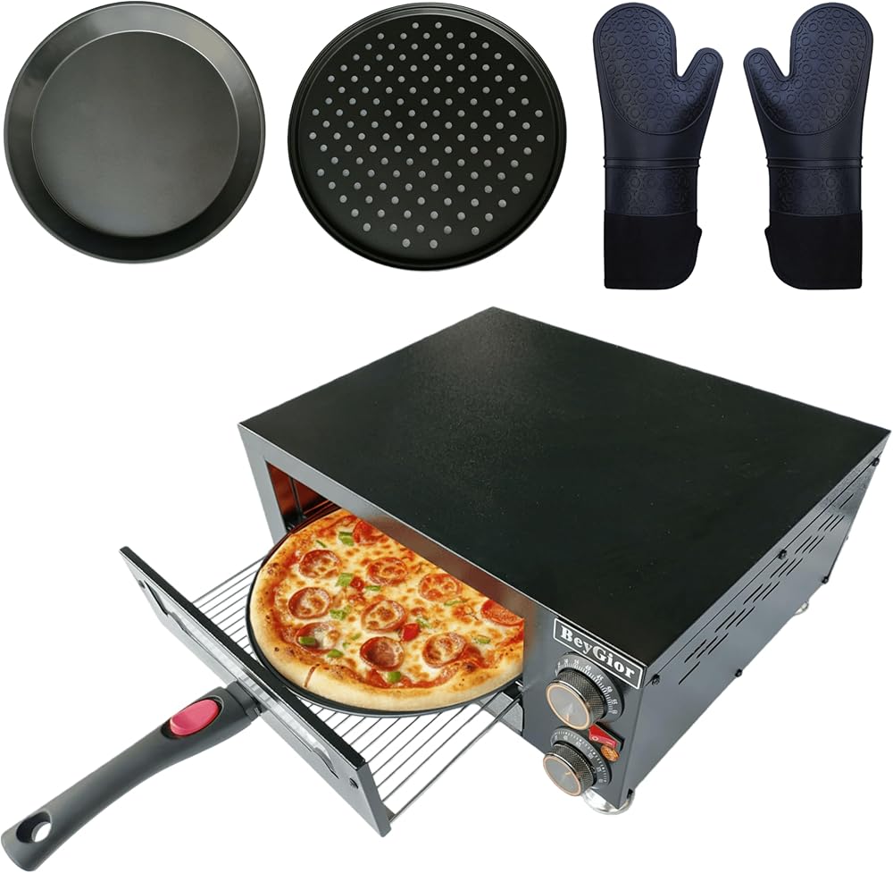 فرن بيتزا كهربائي داخلي، فرن بيتزا على سطح الطاولة مع صواني خبز مقاس 12 بوصة، وقفازات فرن، صانع بيتزا تجاري للمنزل، طباخ بيتزا من الفولاذ المقاوم للصدأ مع نافذة مرئية، مقبض قابل للإزالة