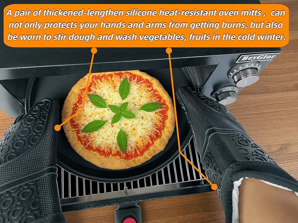 • تكوين الأمان: تم تجهيز طباخات البيتزا المصنوعة من الفولاذ المقاوم للصدأ BeyGior للاستخدام المنزلي بمقبض معزول وزوج من قفازات الفرن المقاومة للحرارة والمضادة للانزلاق السميكة. يمكن لطباخ البيتزا البيتزا الخاص بنا أن يحمي يديك وذراعيك من خطر الحروق. يعد ارتداء قفازات السيليكون لصنع العجين في فصل الشتاء البارد أمرًا مريحًا للغاية ويضمن أيضًا عدم تلوث قشرة البيتزا. كما أن تصميم المقبض القابل للفصل يوفر مساحة مطبخك بشكل مثالي.