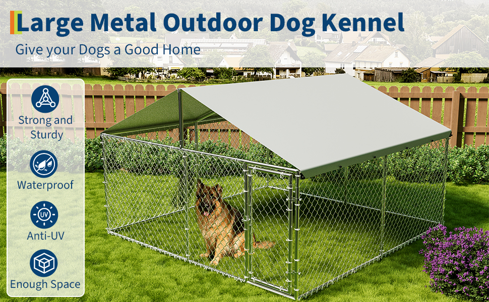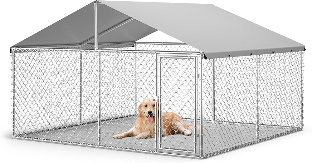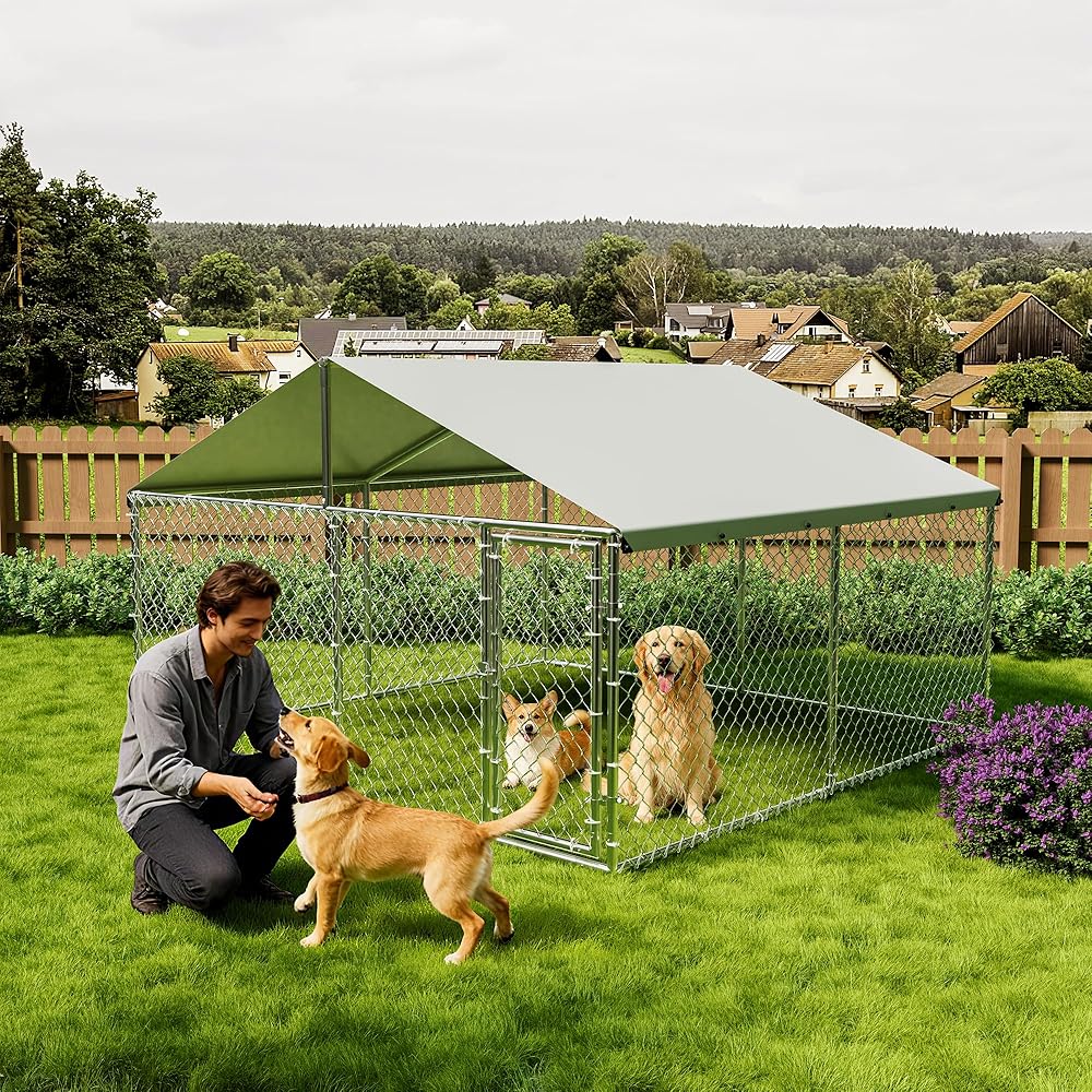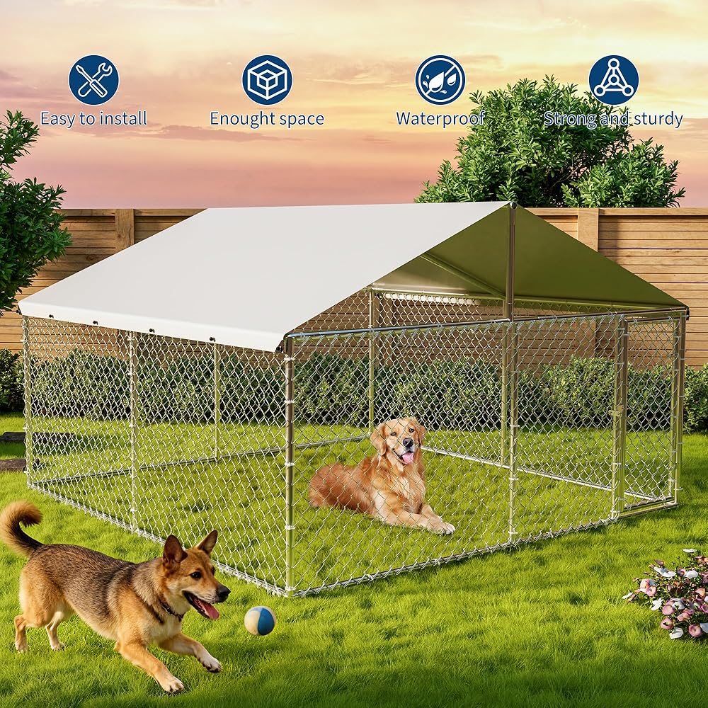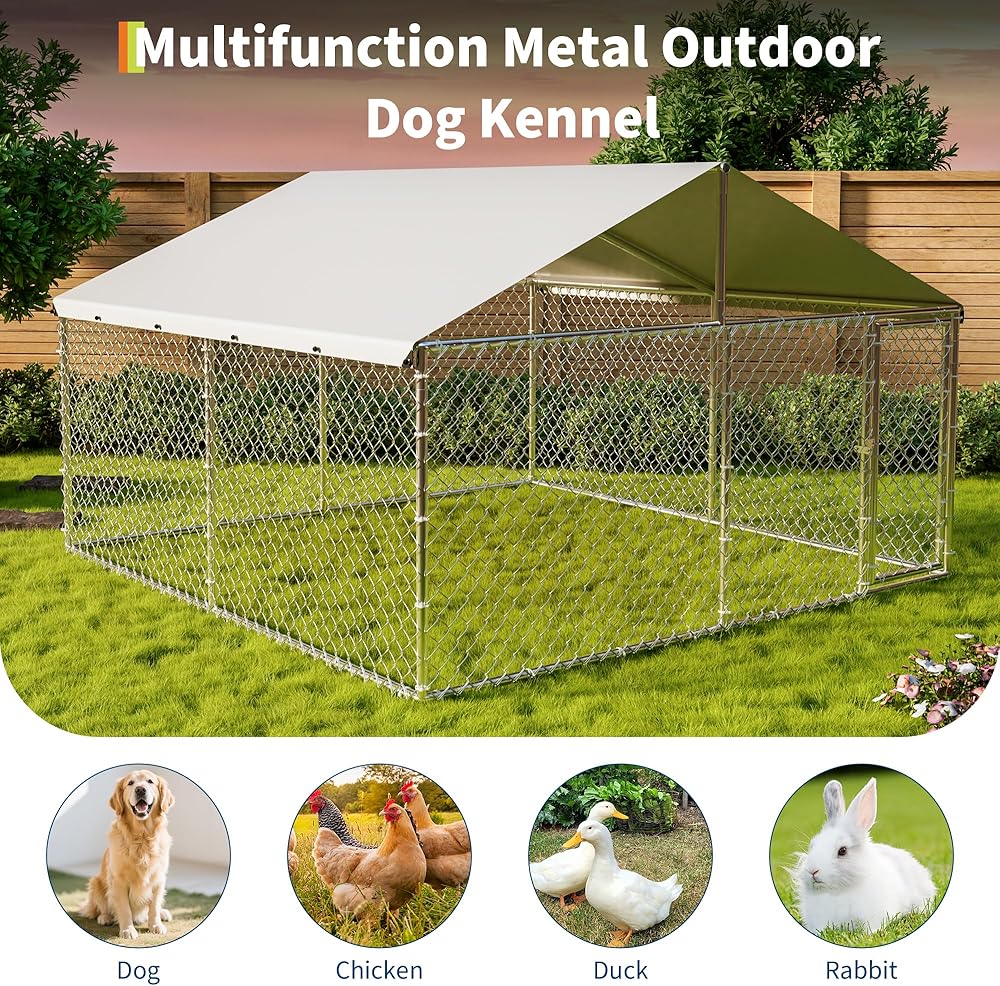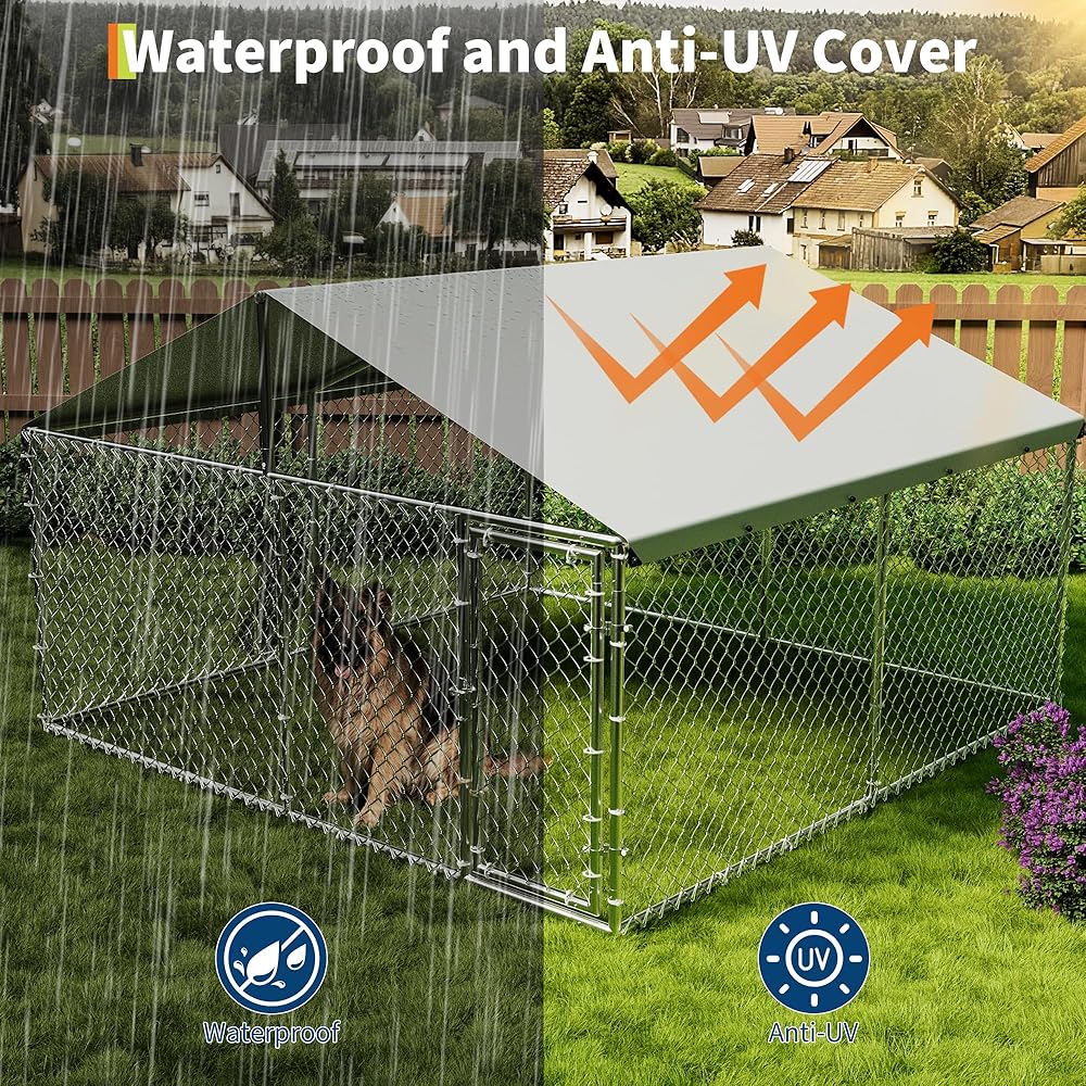 بيت الكلب في الهواء الطلق من Garvee مع غطاء مقاوم للماء والأشعة فوق البنفسجية، حاوية للكلاب مجلفنة، بيت كلب كبير للاستخدام في المزرعة في الفناء الخلفي الخارجي، 10x10x6ft
