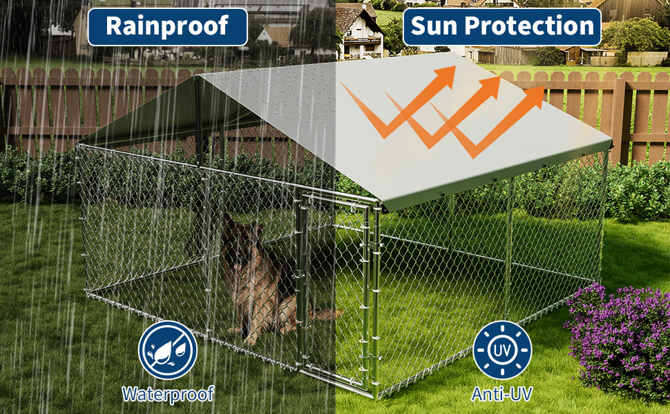 [هيكل متين وثابت] صُمم بيت الكلاب الكبير هذا ليدوم طويلاً، ويتميز بأنابيب فولاذية مجلفنة وأوتاد أرضية متينة على شكل حرف U لتحقيق أقصى قدر من القوة والمتانة. يتحمل الإطار المعزز اللعب النشط والظروف الخارجية القاسية، مما يحافظ على سلامة حيواناتك الأليفة في مزرعتك أو في الفناء الخلفي موسمًا بعد موسم.