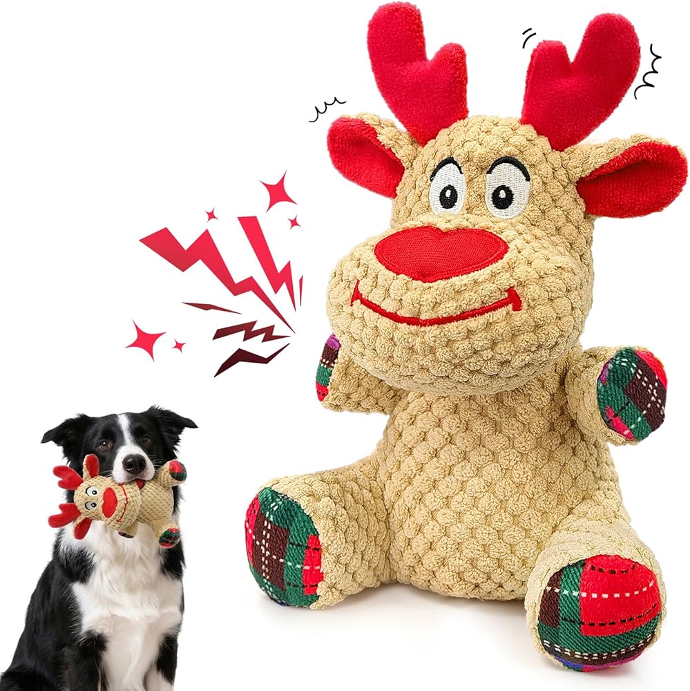 ألعاب الكلاب التي تصدر صريرًا لعيد الميلاد: تحتوي كل لعبة في هذه المجموعة الاحتفالية على صرير مدمج يصدر أصواتًا ممتعة مع كل قضمة أو مخلب. تحتوي حيوان الرنة أيضًا على قرون مجعدة وأذنين وذيل لمزيد من الضوضاء والإثارة - كما لو كان الجرو الخاص بك ينضم إلى متعة العطلة معك، مما يبقيه منخرطًا ومستمتعًا بسعادة طوال الموسم.