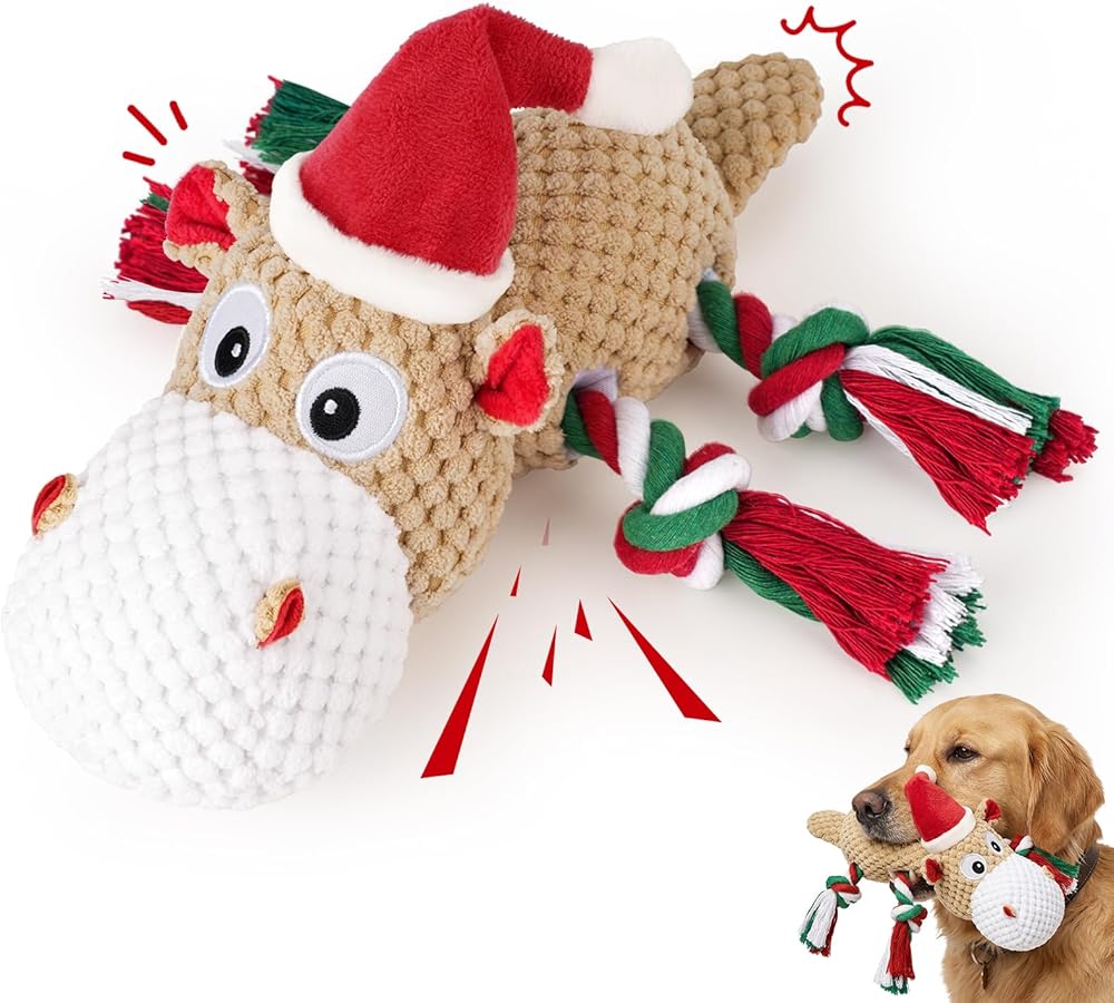 لعبة عيد الميلاد للكلاب: يتميز فرس النهر المرح هذا بوجود صوت صرير مدمج في البطن وأصوات خشخشة في الأذنين والذيل. إنها تصدر أصواتًا مرحة لا تقاوم مع كل قضمة أو مخلب، كما لو كان الجرو الخاص بك ينضم إلى متعة عيد الميلاد معك، مما يبقيه منخرطًا ومستمتعًا بسعادة طوال موسم العطلات.