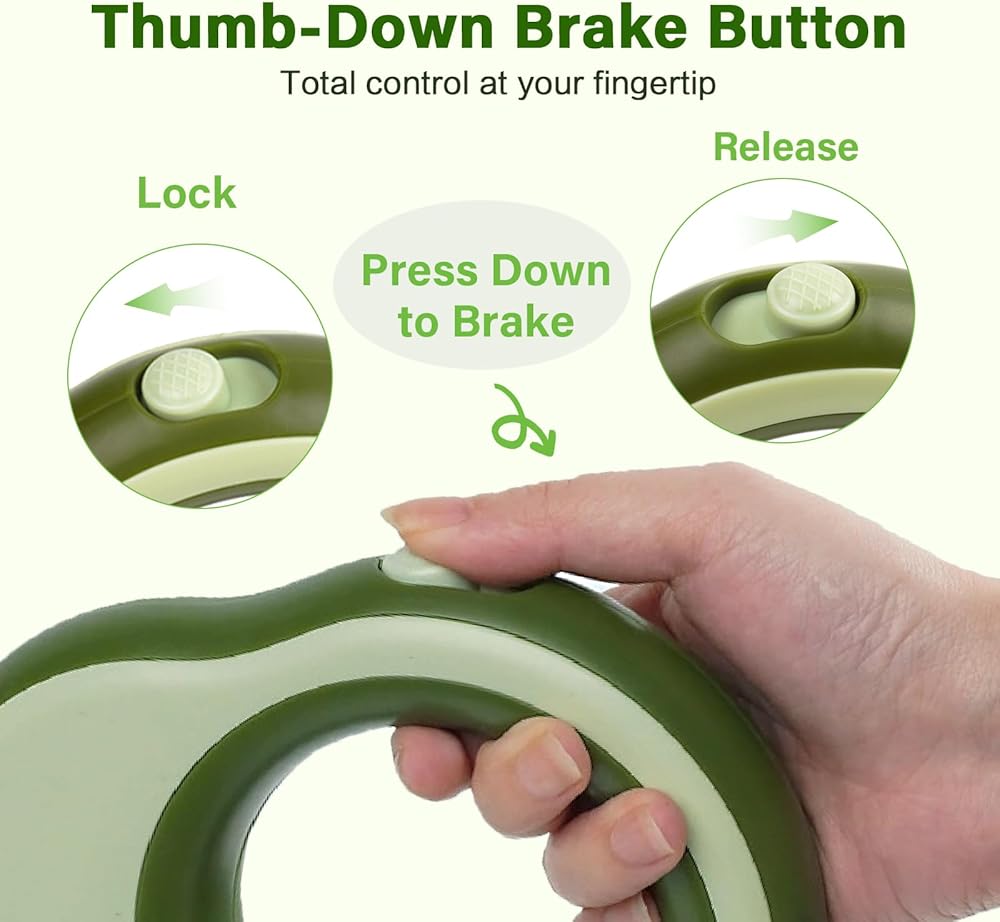 مقود كلب قابل للسحب، مقود قابل للسحب بطول 11.5 قدم للكلاب بوزن 0-55 رطل، قفل بيد واحدة، شريط نايلون عاكس قوي خالٍ من التشابك بزاوية 360 درجة، مثالي للكلاب المتوسطة والكبيرة، باللون الأخضر