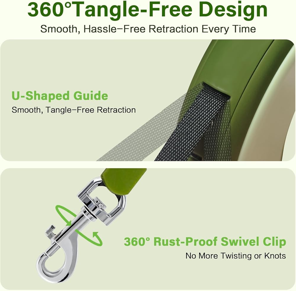• مقود مضاد للتشابك بطول 11.48 قدمًا مع شريط: يتميز XCPP بمقود قابل للسحب بطول 11.48 قدمًا مع تمدد سلس وسهل التعديل وحركة 360 درجة لمنع التشابك، مما يسمح لكلبك بالاستكشاف بحرية مع البقاء آمنًا.