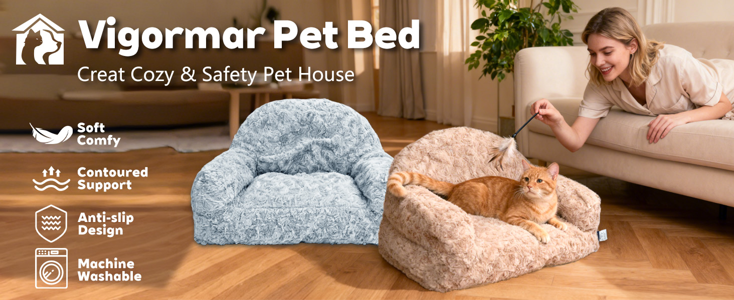 ألياف دقيقة فاخرة لراحة أفضل: أسرة القطط Vigormar للقطط الداخلية مصنوعة من نسيج مخملي كريستالي عالي الجودة يوفر الدفء مع توفير قدرة ممتازة على التنفس، مما يضمن الراحة على مدار العام للقطط والكلاب.