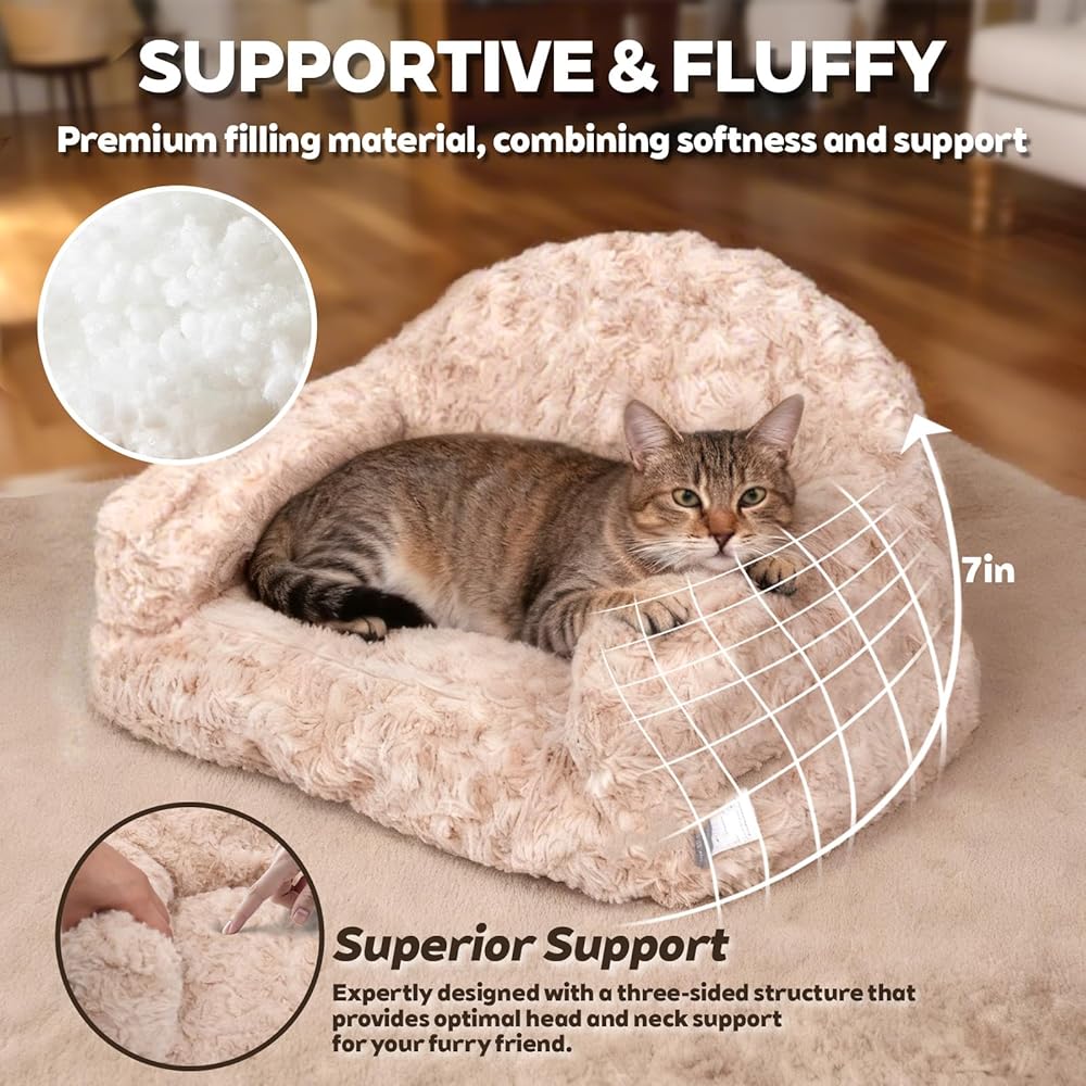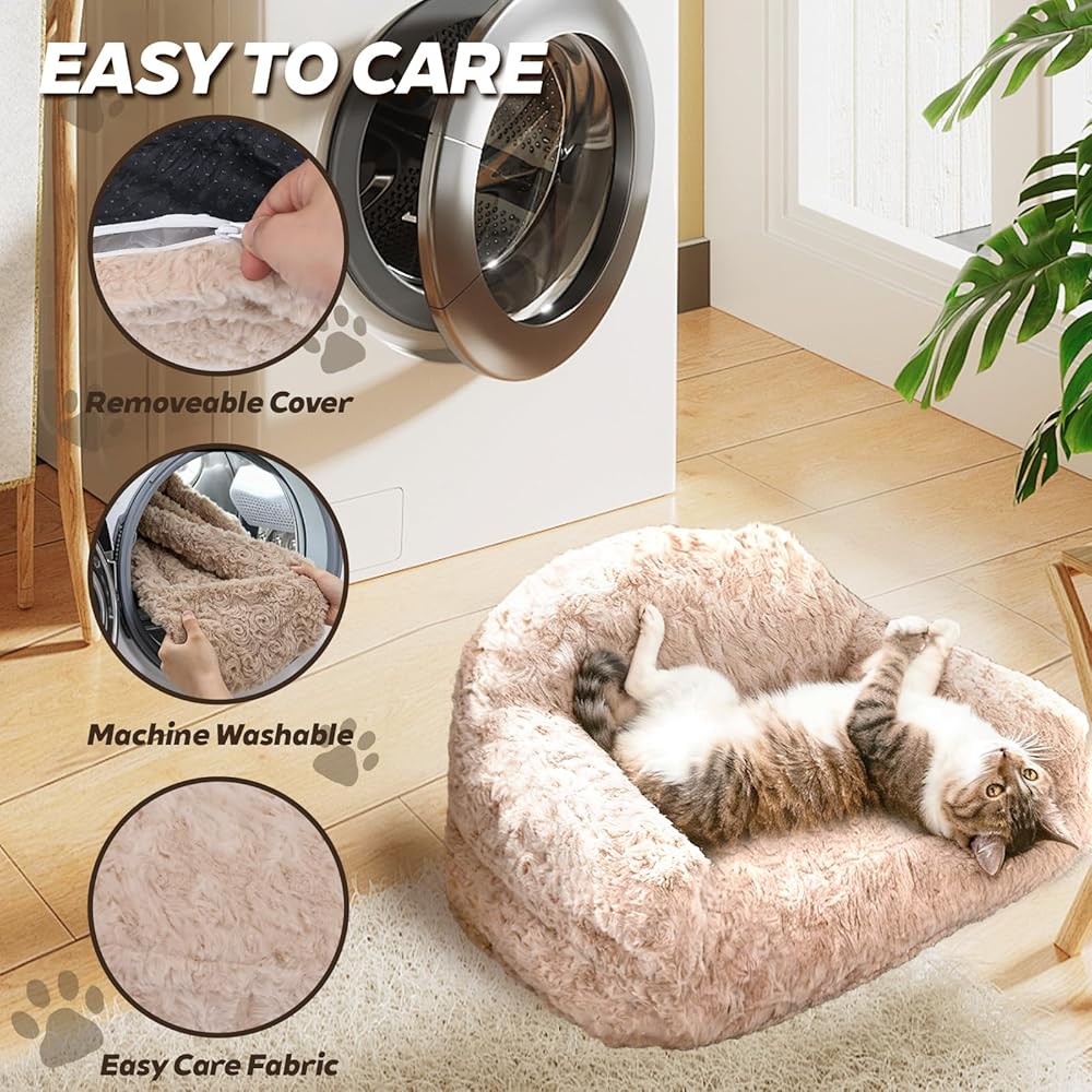 يمكن غسله في الغسالة لسهولة التنظيف: يأتي سرير أريكة القطط مع غطاء قابل للإزالة يسهل خلعه وغسله في الغسالة (الغطاء فقط)، ويعالج الشعر والبقع دون عناء لضمان النظافة والمتانة.