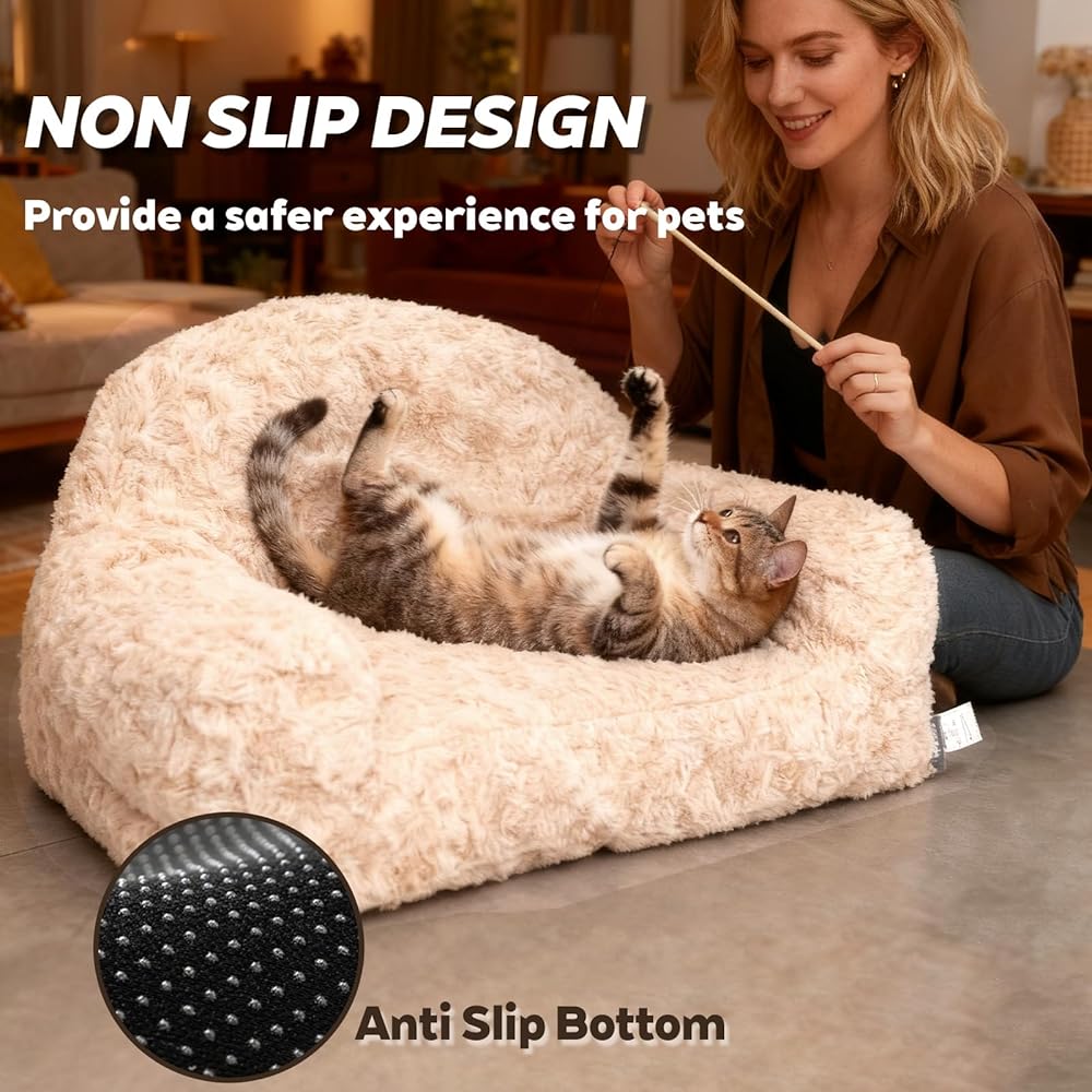 الجزء السفلي غير القابل للانزلاق يضمن المزيد من الأمان: تتميز أريكة الحيوانات الأليفة بمادة سفلية مضادة للانزلاق، مما يمنع السرير الفخم من التحرك أو الانزلاق حتى أثناء اللعب النشط، مما يعزز سلامة قطتك وكلبك.