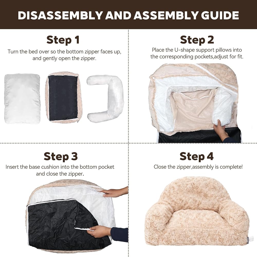 نصائح ودية: يصل سرير الحيوانات الأليفة الخاص بنا كعبوة مفرغة من الهواء في صندوق، يرجى التربيت لجعل أريكة الحيوانات الأليفة منفوشة تمامًا قبل الاستخدام، وانتظر لمدة 48-72 ساعة، وسيعود إلى شكله بعد هزه.