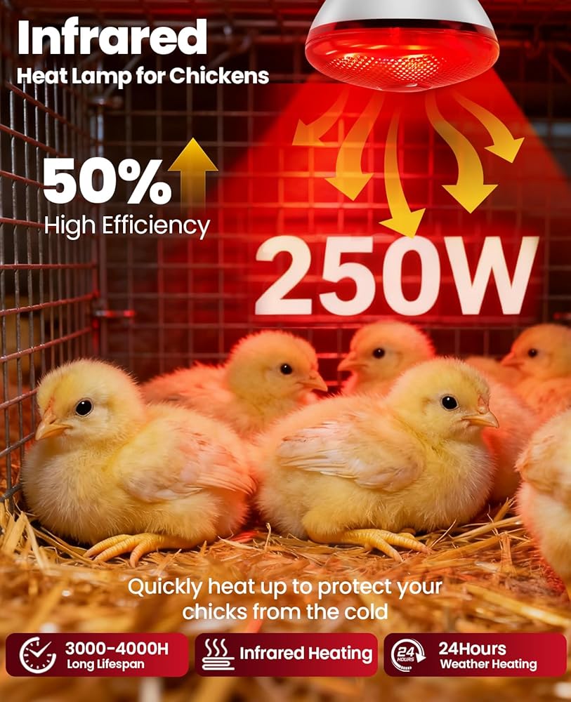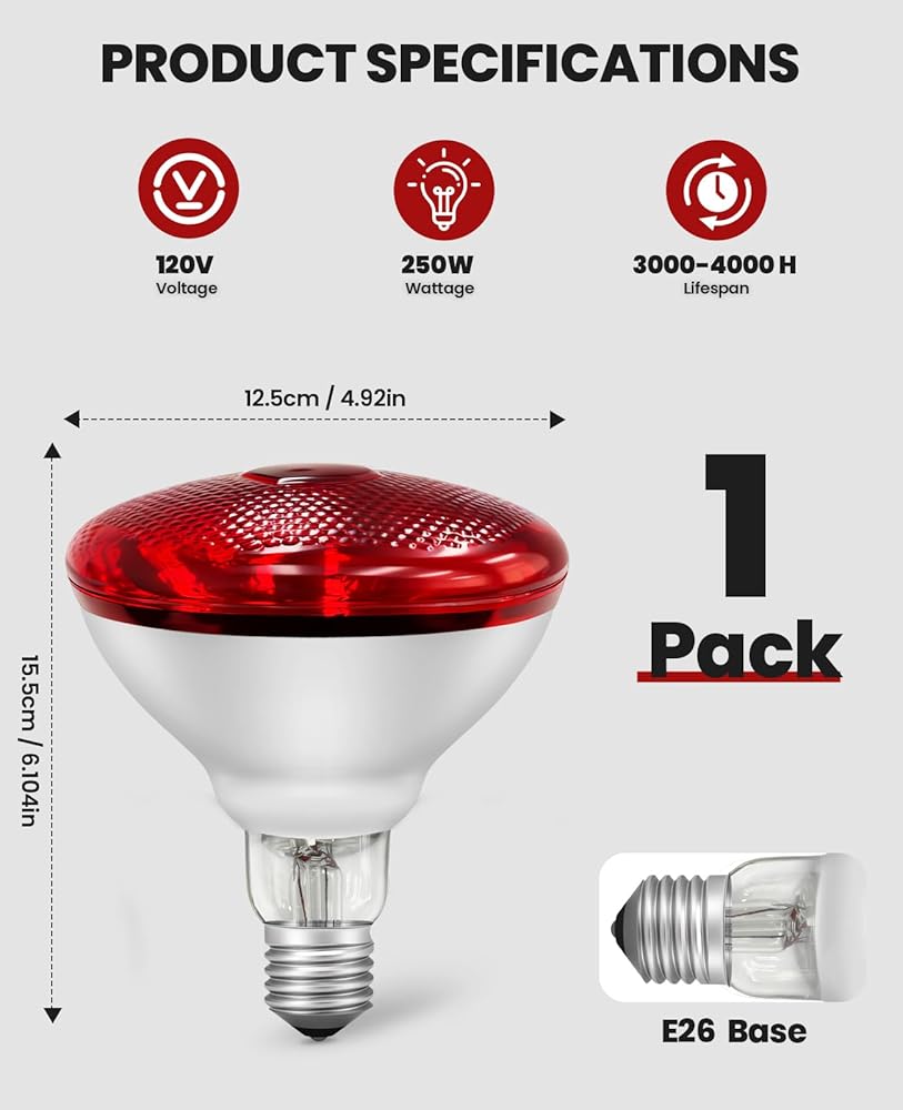 مصباح الحرارة بالأشعة تحت الحمراء للدجاج: لمبة المصباح الحراري الأحمر بقدرة 250 وات - مصابيح الإضاءة الحرارية لدجاج الحضانة والحيوانات الأليفة وخدمة طعام الزواحف والعلاج بالضوء في الحمام - مصابيح الإضاءة المتوهجة بالأشعة تحت الحمراء للدجاج - عبوة واحدة