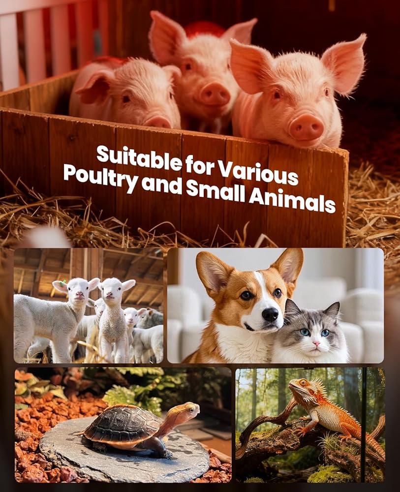 استخدام متعدد الاستخدامات - يعد مصباح الحرارة بالأشعة تحت الحمراء هذا مثاليًا لمجموعة متنوعة من التطبيقات - بدءًا من الدواجن والحيوانات الأليفة المنزلية مثل القطط والكلاب وحتى الثدييات الصغيرة مثل الأرانب. بالإضافة إلى ذلك، فهو يوفر الدفء الأساسي للزواحف، بما في ذلك التنانين الملتحية والسحالي، ويدعم نمو النباتات المسببة للاحتباس الحراري من خلال تحفيز نموها، مع عزل المواد الغذائية بكفاءة في صناعة الخدمات.