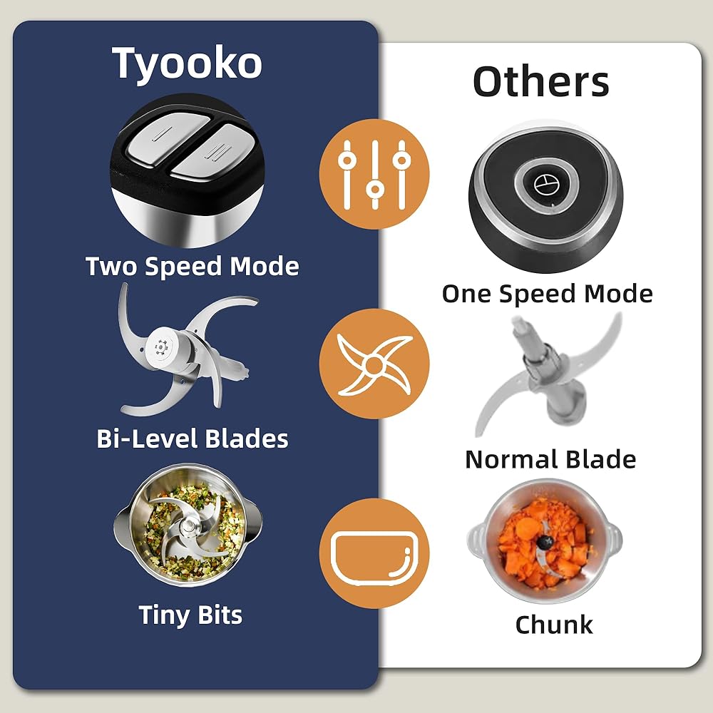 【وضع مزدوج - سرعتان】استخدام السرعة الناعمة (السرعة I) عن طريق تقطيع الخضروات الطازجة مثل البقدونس والثوم والكزبرة والجزر والطماطم والبطاطس. استخدام السرعة العالية (السرعة II) عن طريق تقطيع الفاكهة والمكسرات واللحوم مثل لحم الخنزير ولحم البقر. التعامل بسهولة مع جميع أنواع الأطعمة مما يجعل مفرمة اللحم هذه بمثابة مساعد مثالي لتجهيز الطعام قبل الطهي