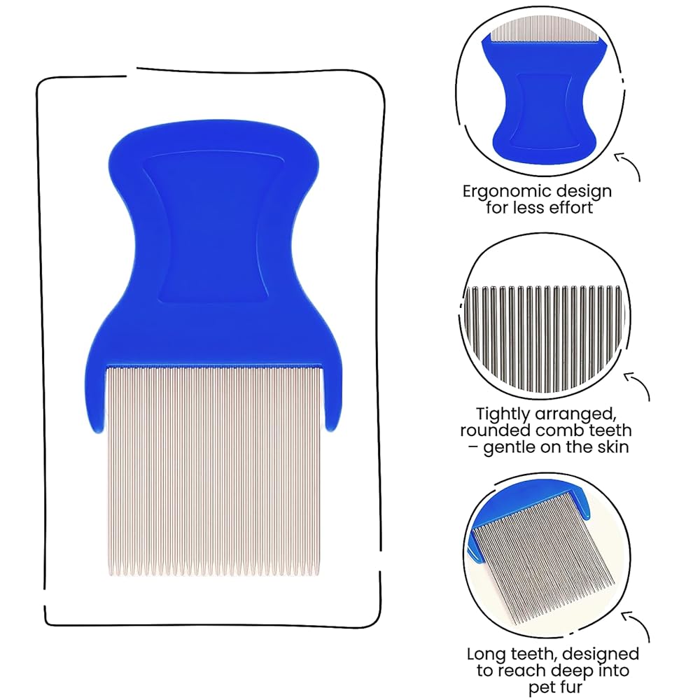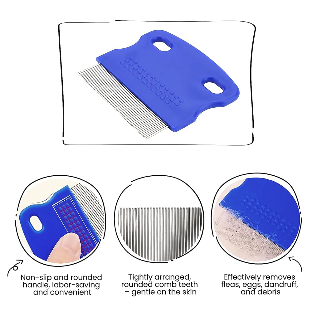 【استخدامات متعددة】 هذه المجموعة متعددة الاستخدامات تخدم أغراضًا متعددة. إنه مشط قوي للبراغيث للكلاب، ومشط لطيف للبراغيث للقطط، ومشط فعال للقمل للأطفال والكبار. تصميم ذو أسنان دقيقة يحبس ويزيل البراغيث والقمل والصئبان بدقة - مثالي كمشط للقمل للشعر الكثيف.