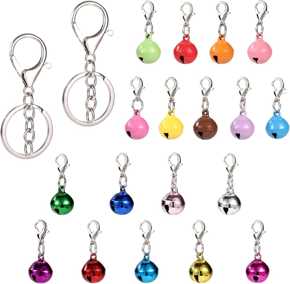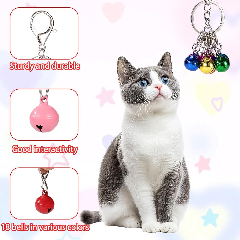 Product Includes: You will receive 18 pieces of the bells for cat collar and 2 silver keychains. Sufficient quantity for you use and replacement. Perfect for pet owners with multiple pets. (Note: Collar not included.)