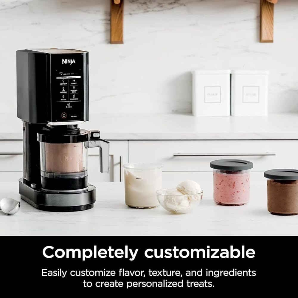 The Ninja CREAMi transforms frozen solid bases into ice cream, sorbets, milkshakes and more at the touch of a button. From healthy to indulgent, the Ninja CREAMi can create frozen treats as unique as you are! This item contains 3 additional pints to store all your CREAMi frozen treats, compatible with the NC301, NC300, NC299AMZ, CN305A and CN301CO product series only.