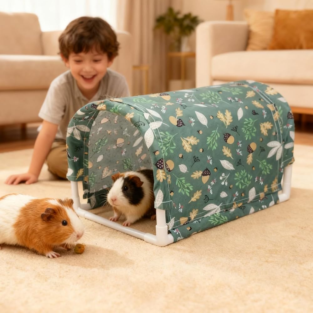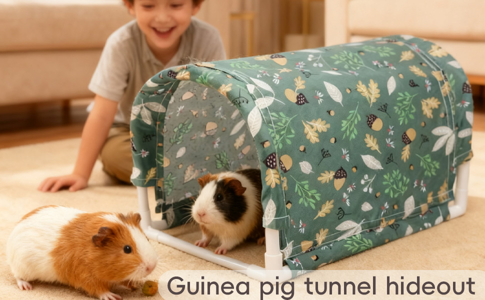 ليس فقط للخنازير الغينية: فهو مناسب لأنواع مختلفة من الحيوانات الصغيرة مثل الأرانب الصغيرة الحجم أو الشنشيلة أو القنافذ أو الفئران. تأكد من أن حجم النفق كبير بما يكفي لحيوانك الأليف الصغير