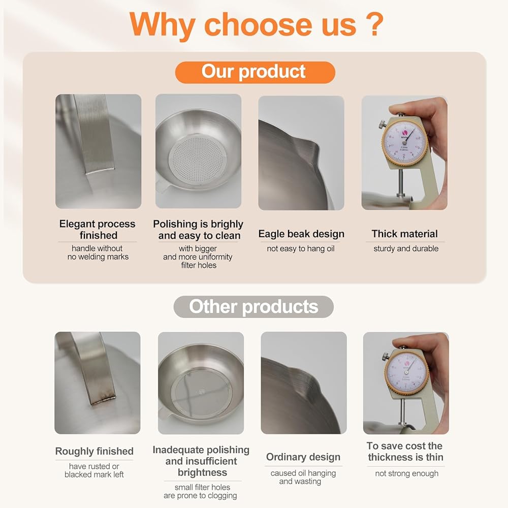 - [فولاذ مقاوم للصدأ ممتاز 304] مصنوع من الفولاذ المقاوم للصدأ السميك الآمن غذائيًا والذي يقاوم الصدأ والبقع والتآكل للاستخدام طويل الأمد.