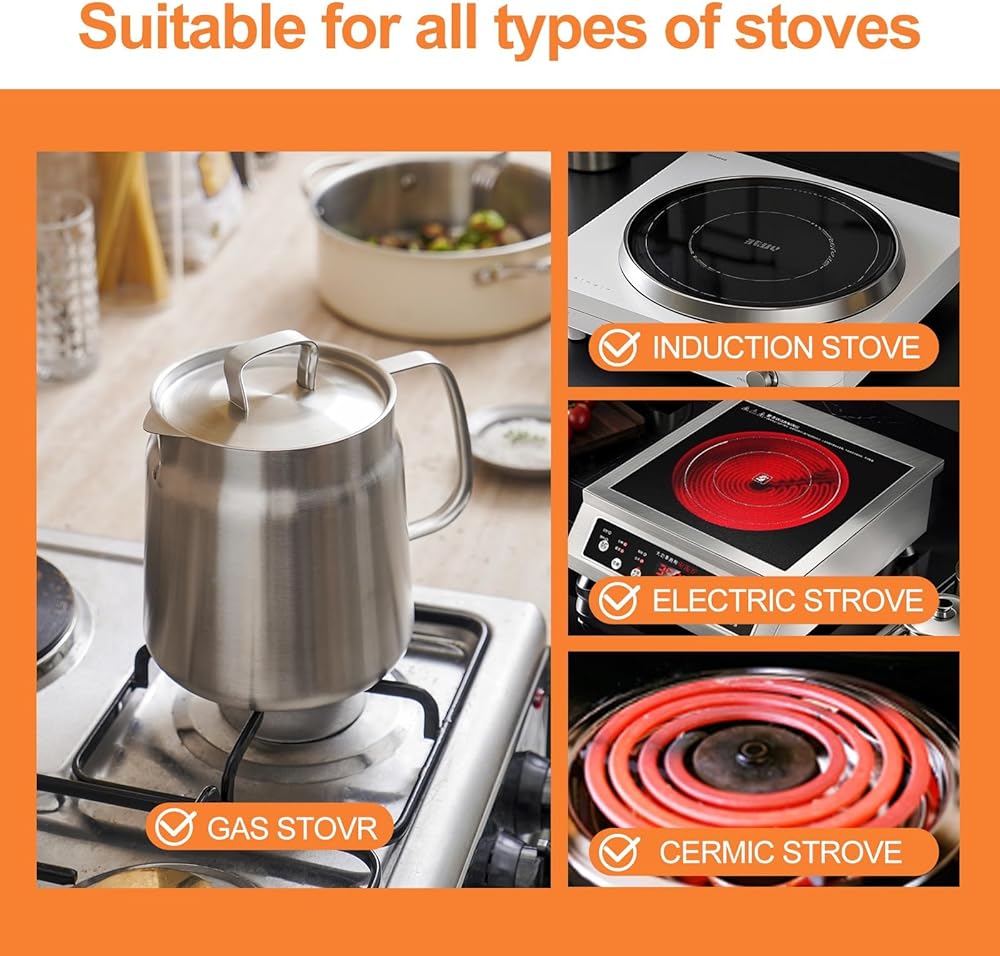 - [قاعدة مركبة للتدفئة المتساوية] توفر القاعدة ثلاثية الطبقات توزيعًا سريعًا ومتساويًا للحرارة، متوافقة مع مواقد الحث والغاز والسيراميك والكهرباء.
