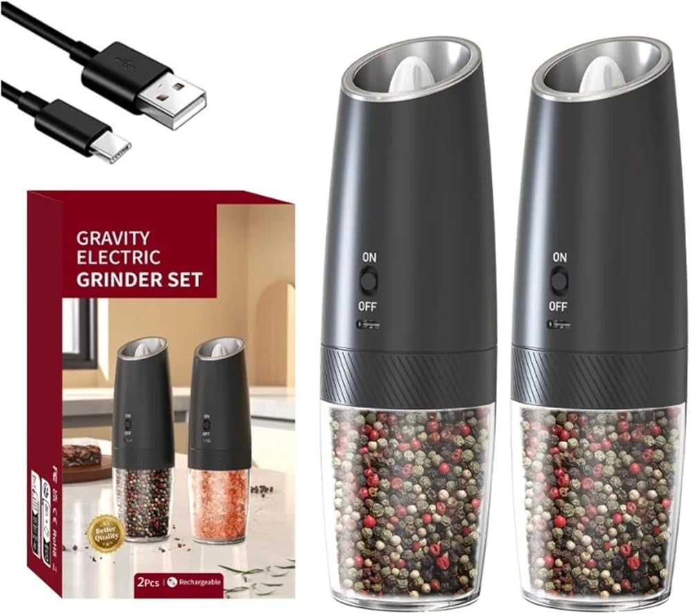 USB Rechargeable Electric Salt Pepper Grinder Adjustable Roughness Freshly Ground Pepper Powder Grinder Kitchen Cooking Tools