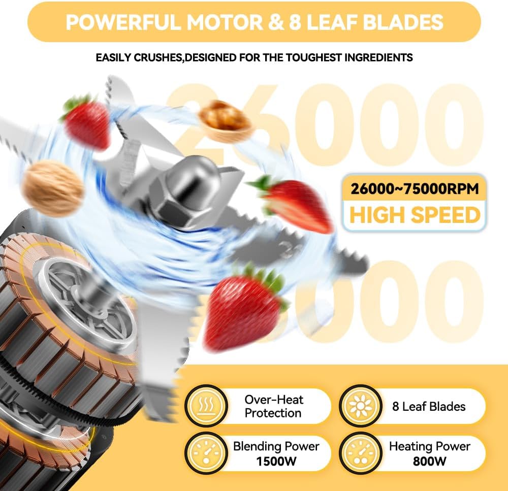 【نظام جديد ذو 8 شفرات حادة - فعال وآمن】 مجهز بمجموعة مطورة من الفولاذ المقاوم للصدأ 304 مكونة من 8 شفرات، مصممة لتحقيق الحدة والسلامة. يضمن تصميم الشفرة المحسّن سحق المكونات بشكل أسرع، وملمس أكثر دقة، وتقليل البقايا، مع الحفاظ على أمان التعامل معها أثناء التنظيف. مثالية لكل شيء بدءًا من زبدة الجوز وحتى الحساء الكريمي.