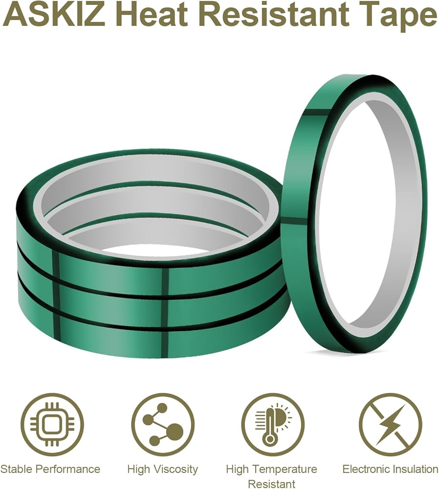 ASKIZ 4 لفات شريط حراري للضغط الحراري، 10 مم × 33 م (108 قدم) شريط درجة حرارة عالية، شريط مقاوم للحرارة، شريط نقل الحرارة للتسامي، شريط ضغط فينيل حراري لأقمشة التي شيرت، لوحة الدائرة