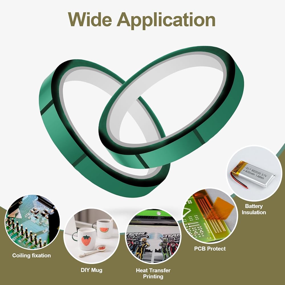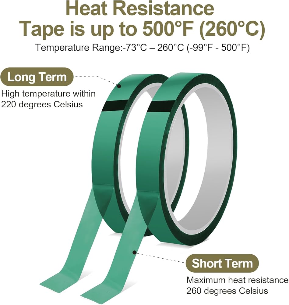 【شريط درجة حرارة عالية】شريط نقل الحرارة هو شريط غشاء بوليميد مع لاصق مقاوم لدرجات الحرارة العالية. شريط مقاوم للحرارة يصل إلى 500 درجة فهرنهايت (260 درجة مئوية)، والقدرة على الحفاظ على مزيجه الفريد من الخصائص الميكانيكية في أقسى الظروف. ، يعد الشريط عالي الحرارة رائعًا للتطبيقات التي تكون فيها الحرارة والاهتزازات القصوى