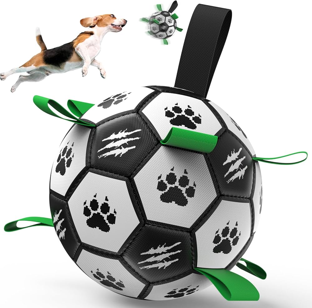 ديمان كرة القدم للكلاب مع الأشرطة، كرة الكلب للمتعة في الهواء الطلق، هدايا عيد الميلاد، كرات لعب الكلاب للحيوانات الأليفة الصغيرة المتوسطة، ألعاب جرو (أسود، 6 بوصة)